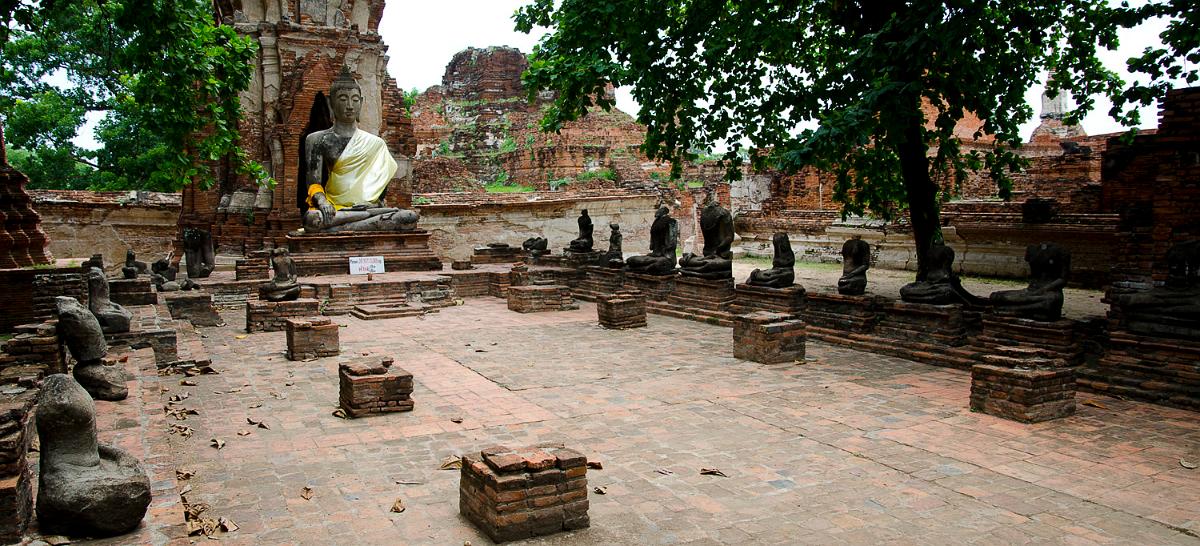 Célèbre pour la tête de Bouddha enveloppé dans les racines d'un arbre, le temple de Wat Mahathat est l'un des plus anciens de Ayuthaya, construit entre 1374 et 1390 par Borom Rachaphirat I. Selon la tradition thaïlandaise, la tête enveloppée dans les racines d'un arbre serait porteuse de chance.