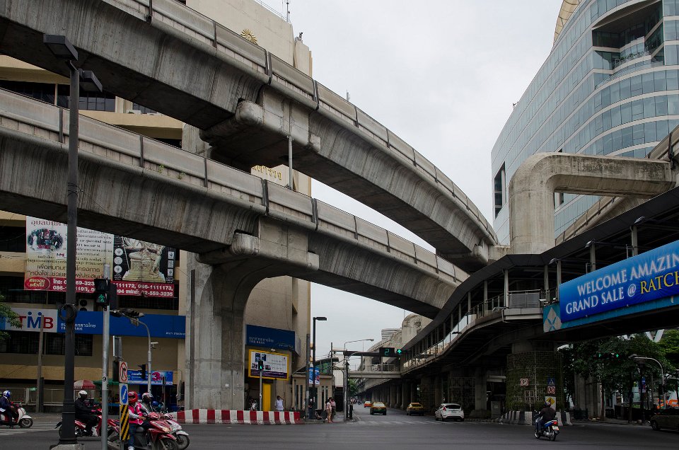Le Sky Train étant ses voies en béton au-dessus des avenues