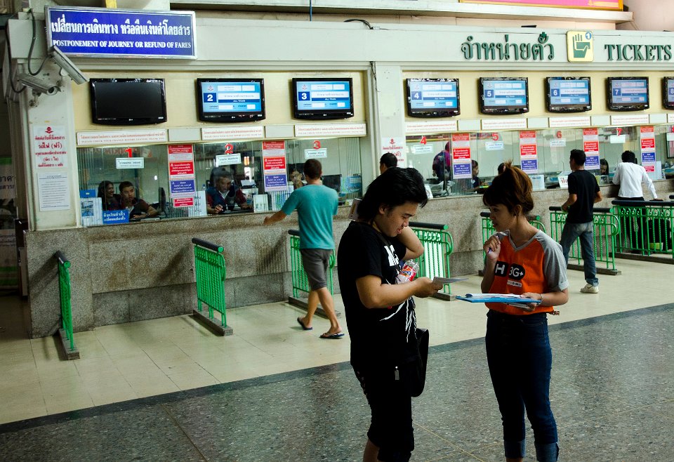 Les guichets de la gare de Hua Lamphong