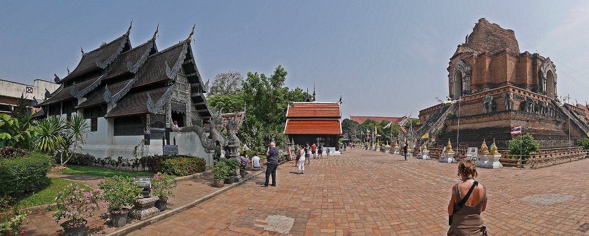 Le Wat Chedi Luang , temple du grand stûpa, a été fondé en 1401 ; il est dominé par un grand chedi du type de Lanna, dont la construction s’est étalée sur plusieurs années. Un tremblement de terre l'a endommagé au XVIe siècle, et seuls les deux tiers inférieurs sont encore visibles. À l’origine, le site comportait trois temples.