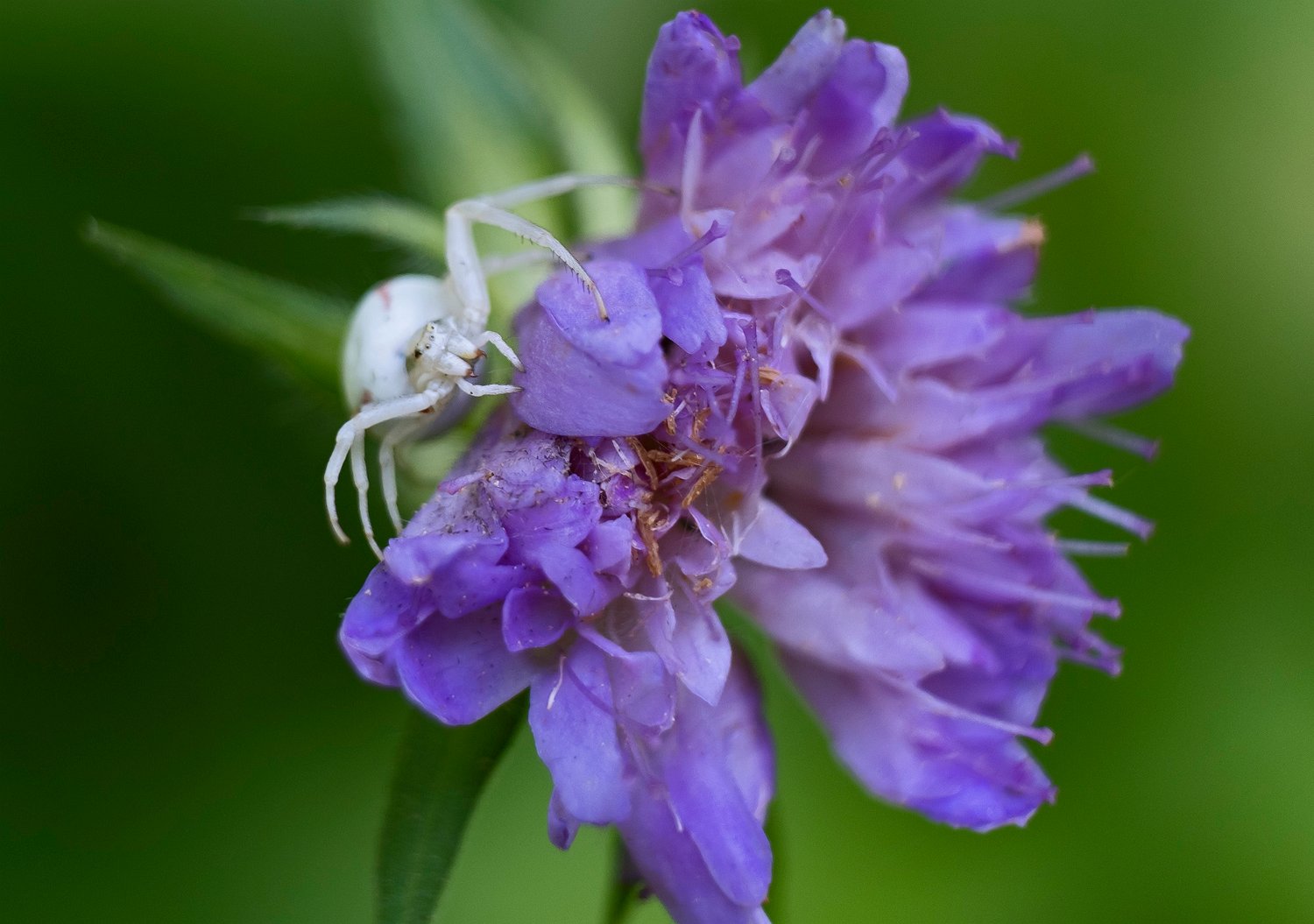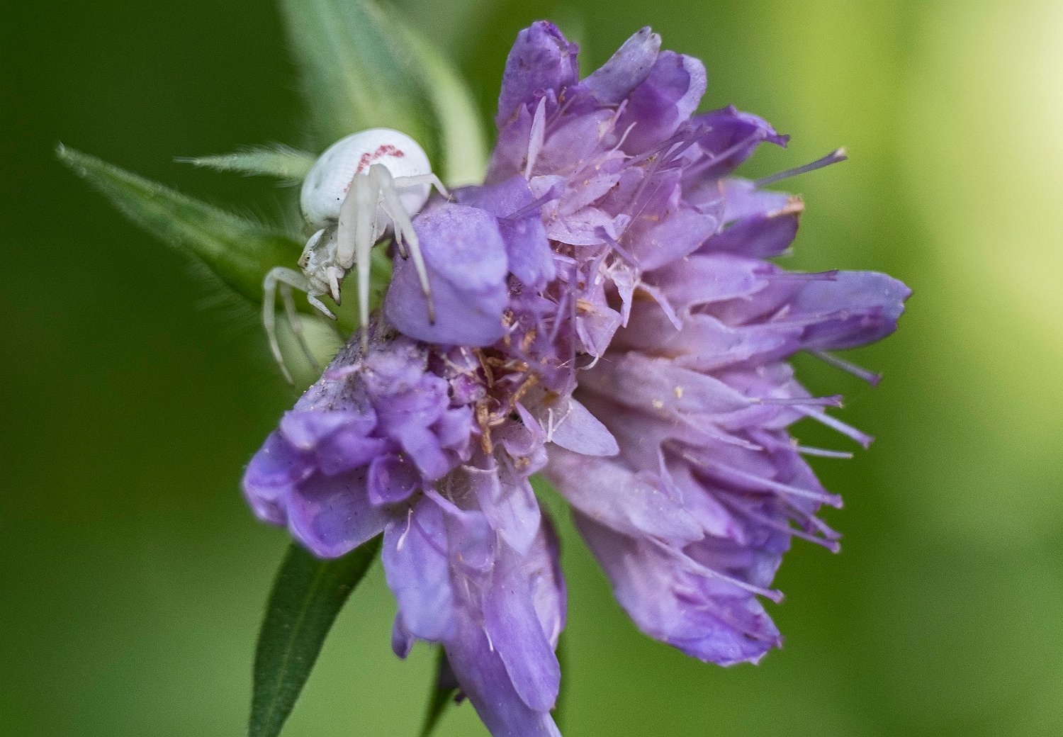 26Araignée crabe sur fleur de knautie des champs (vue de profil)