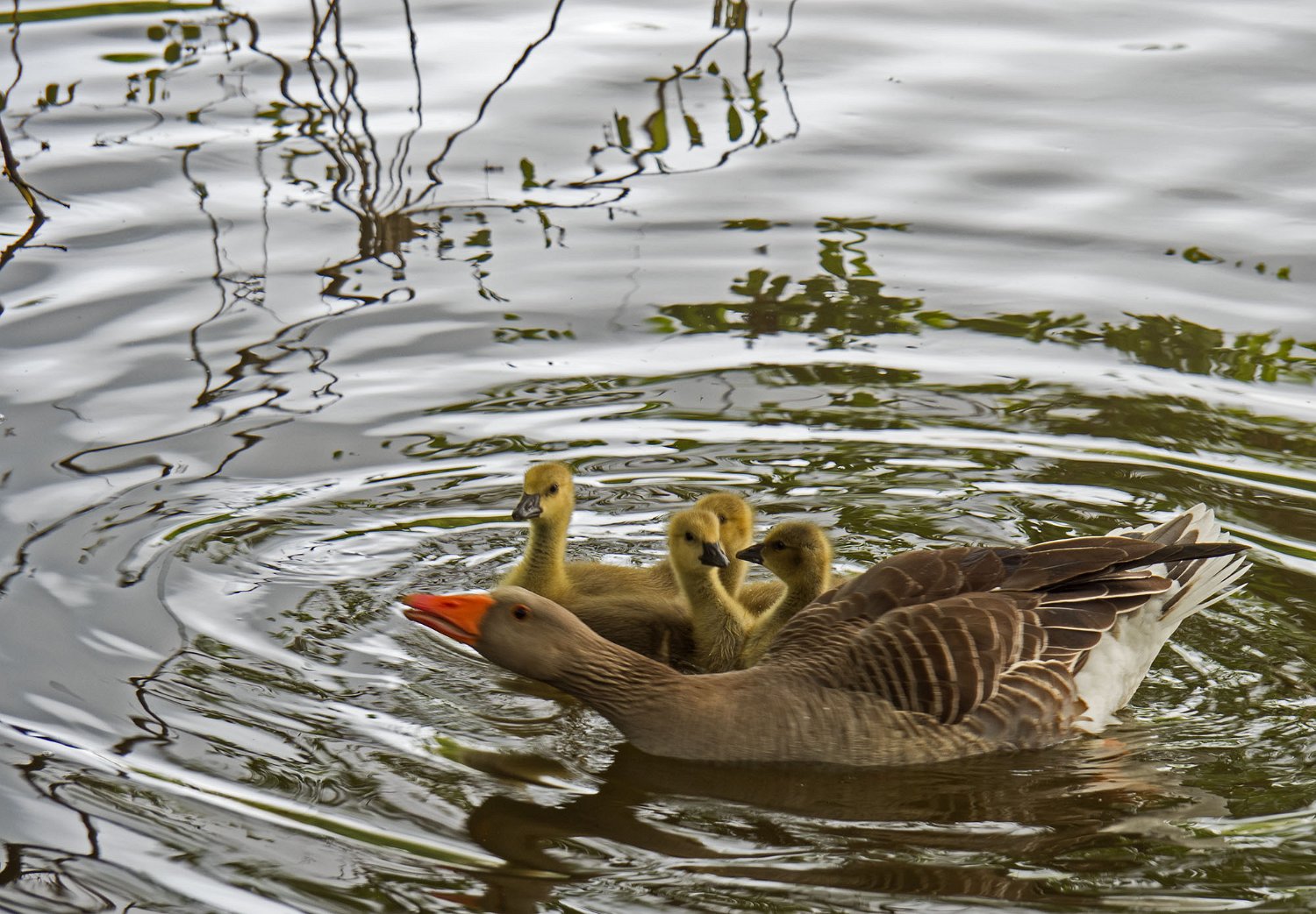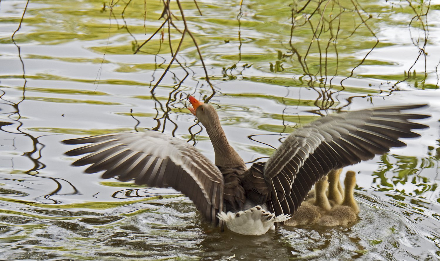 L'oie cendrée à 4 oisons de père inconnu (10/05/18)