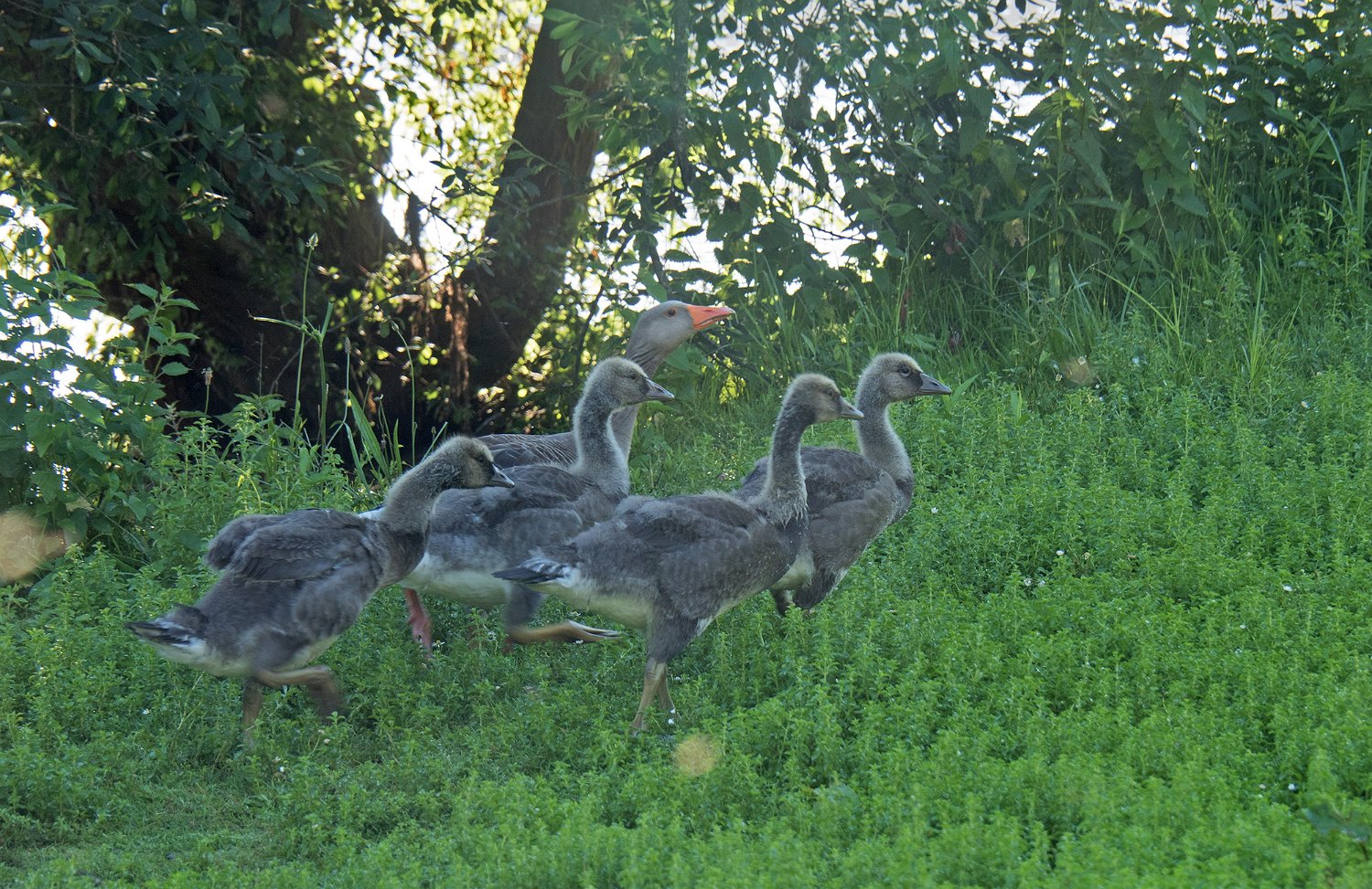 Les oisons cendrés ont bien grossi en un mois (09/06/18)
