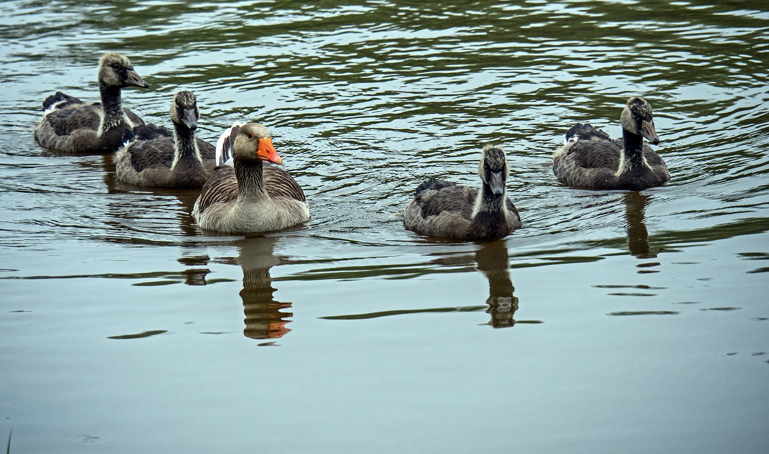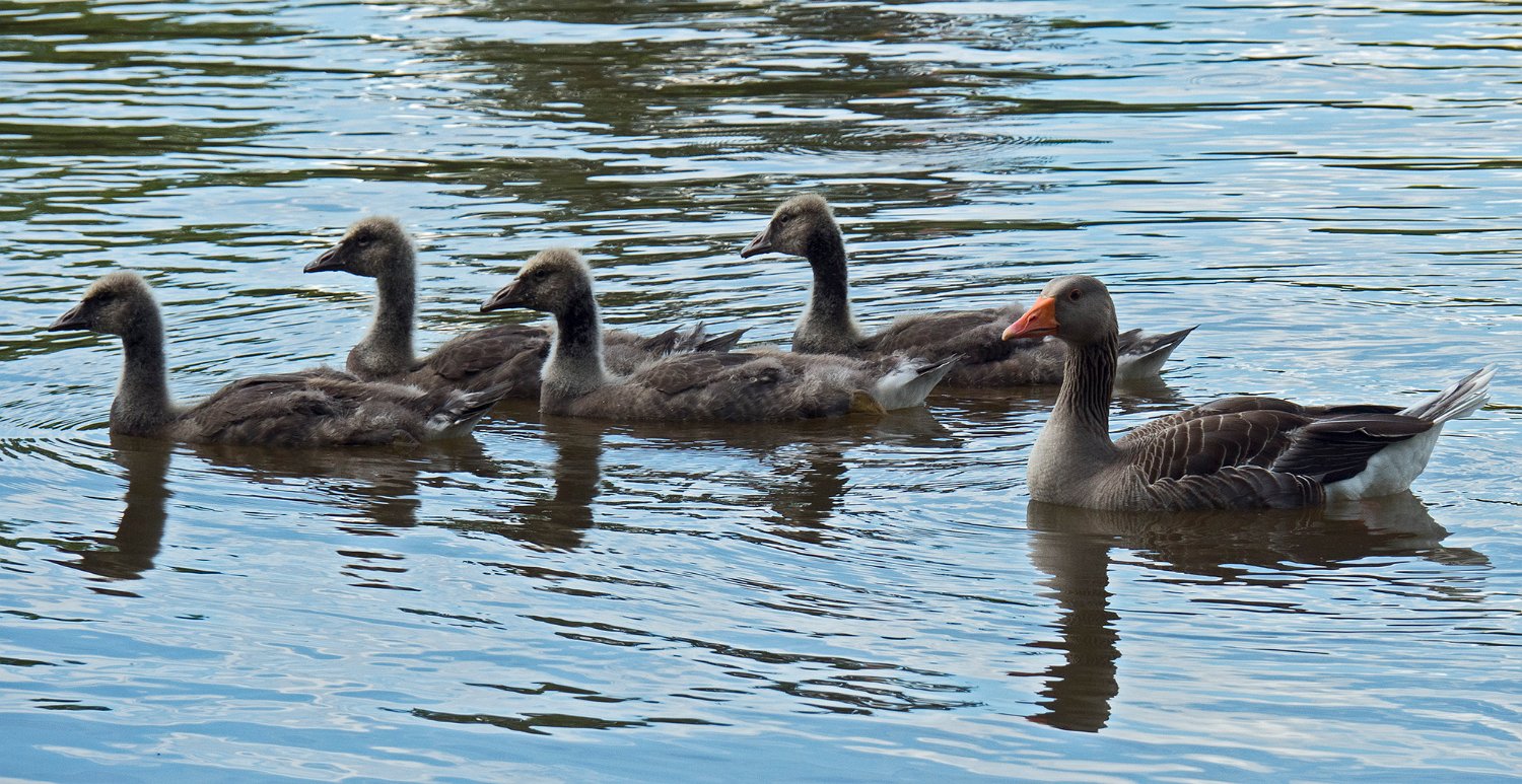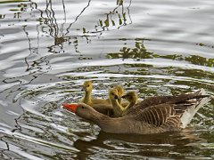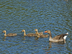 Oie cendrée avec toujours ses 4 oisons (21/05/18)