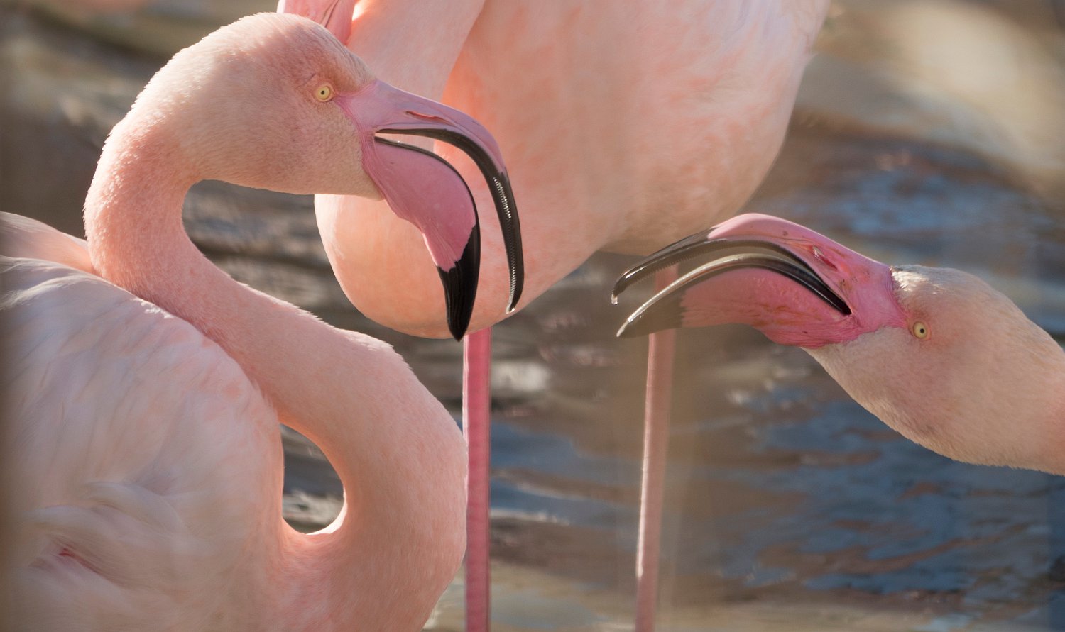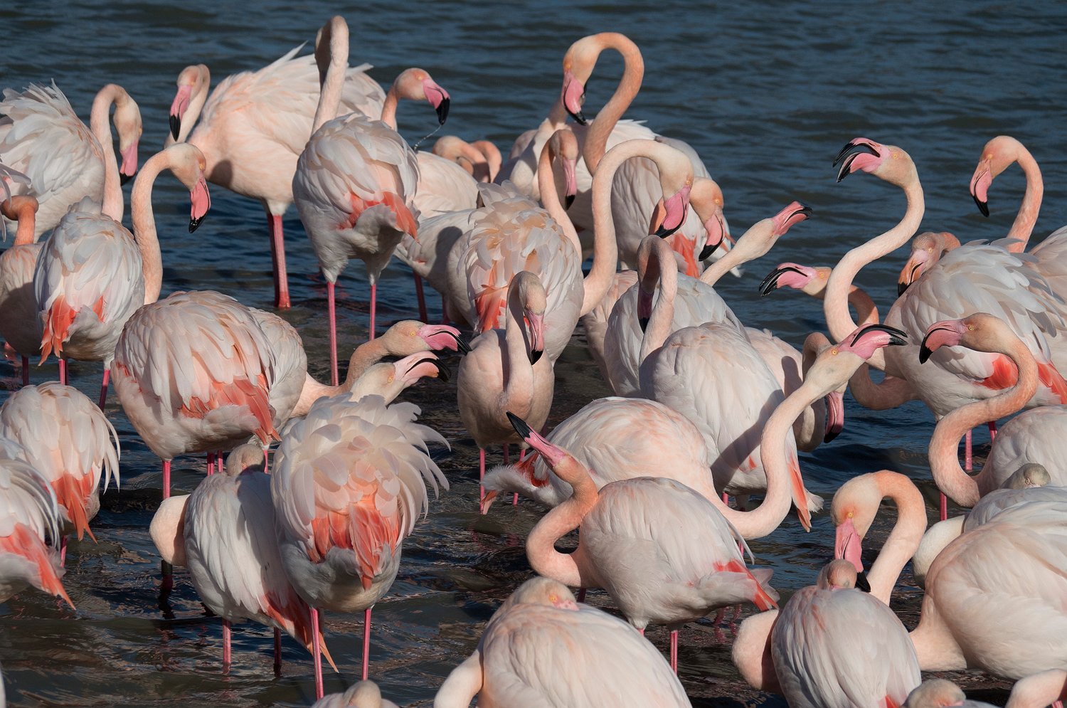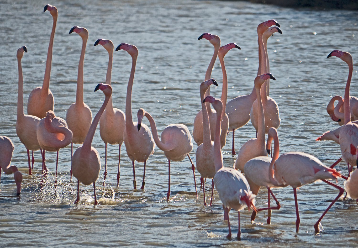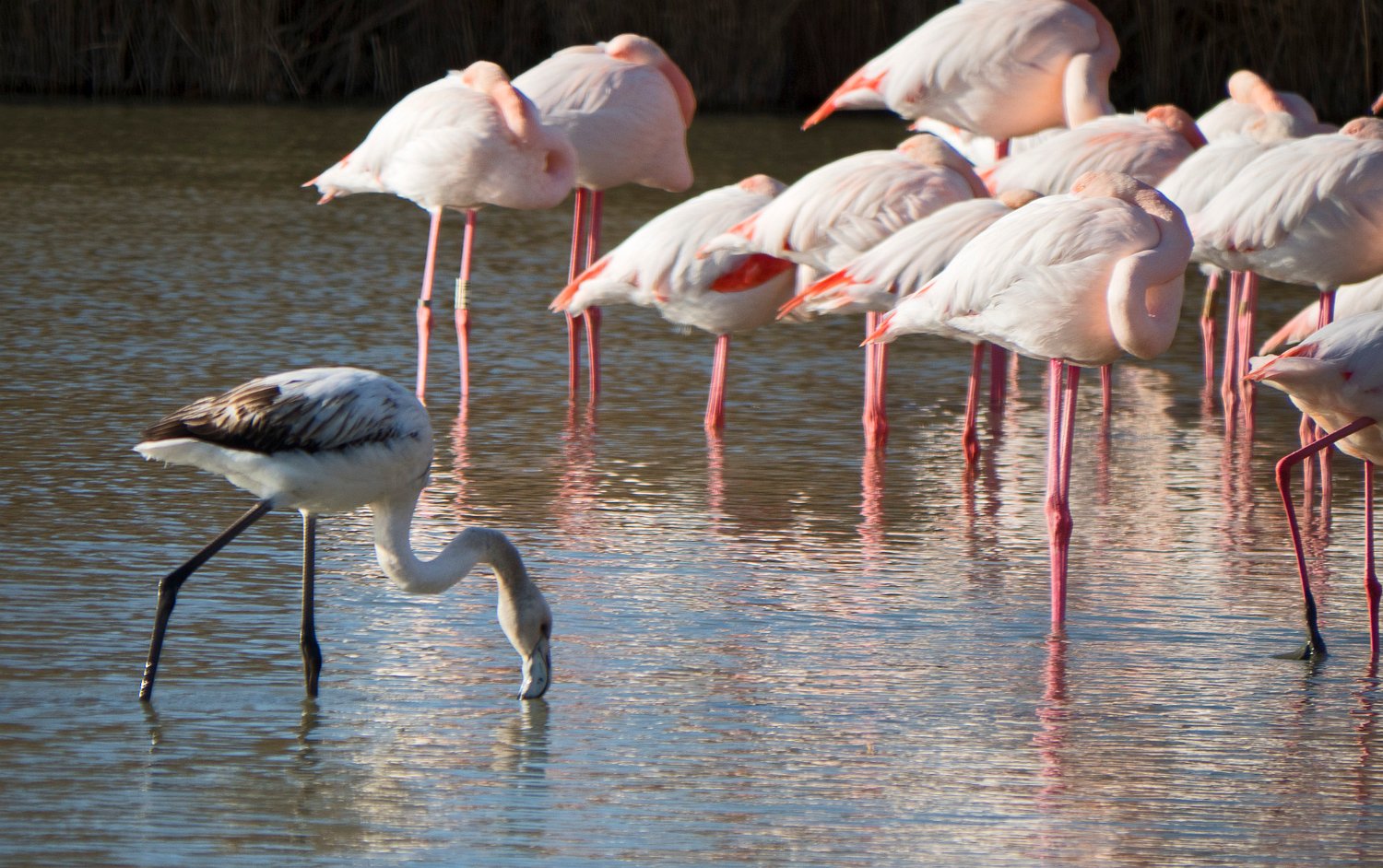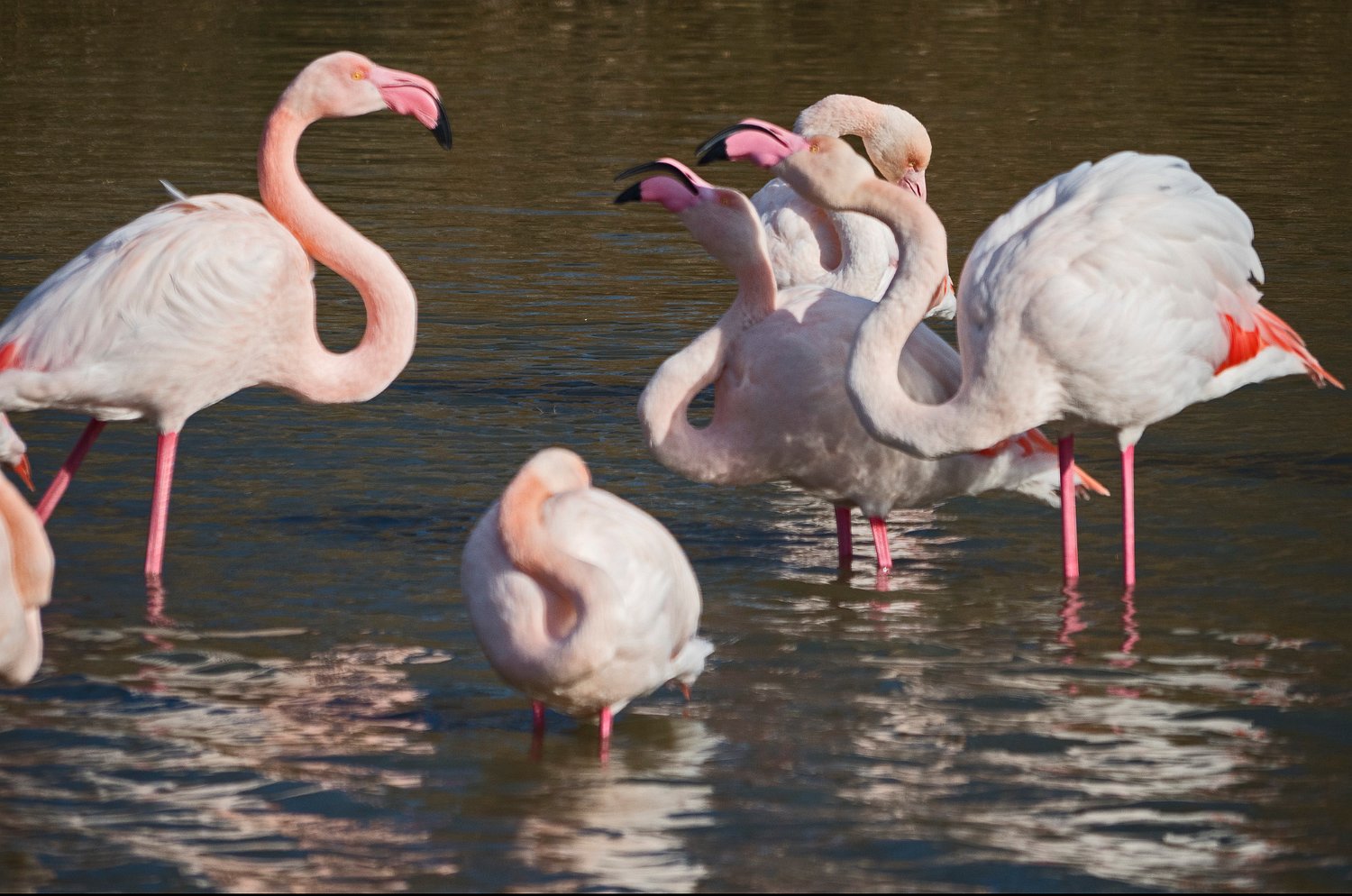 Flamants roses en activité