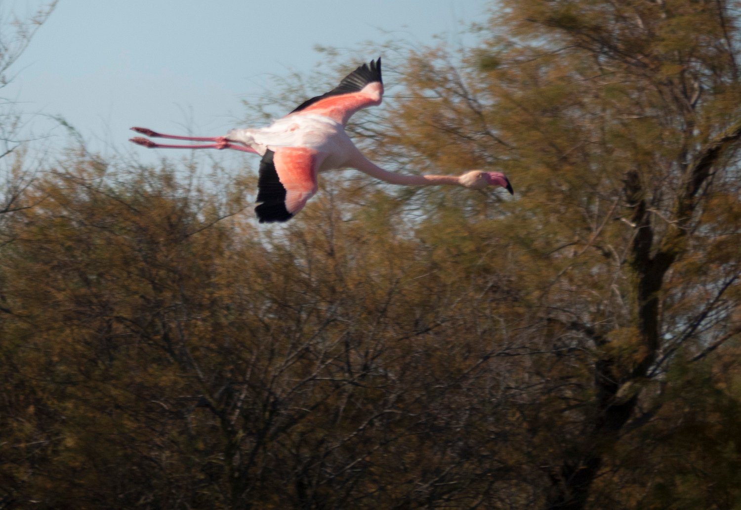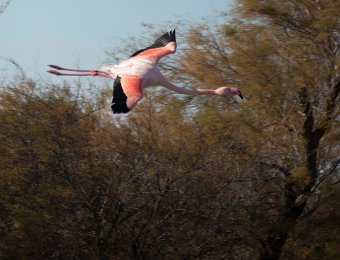 Flamant rose en vol
