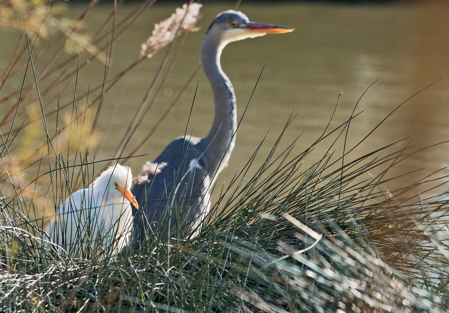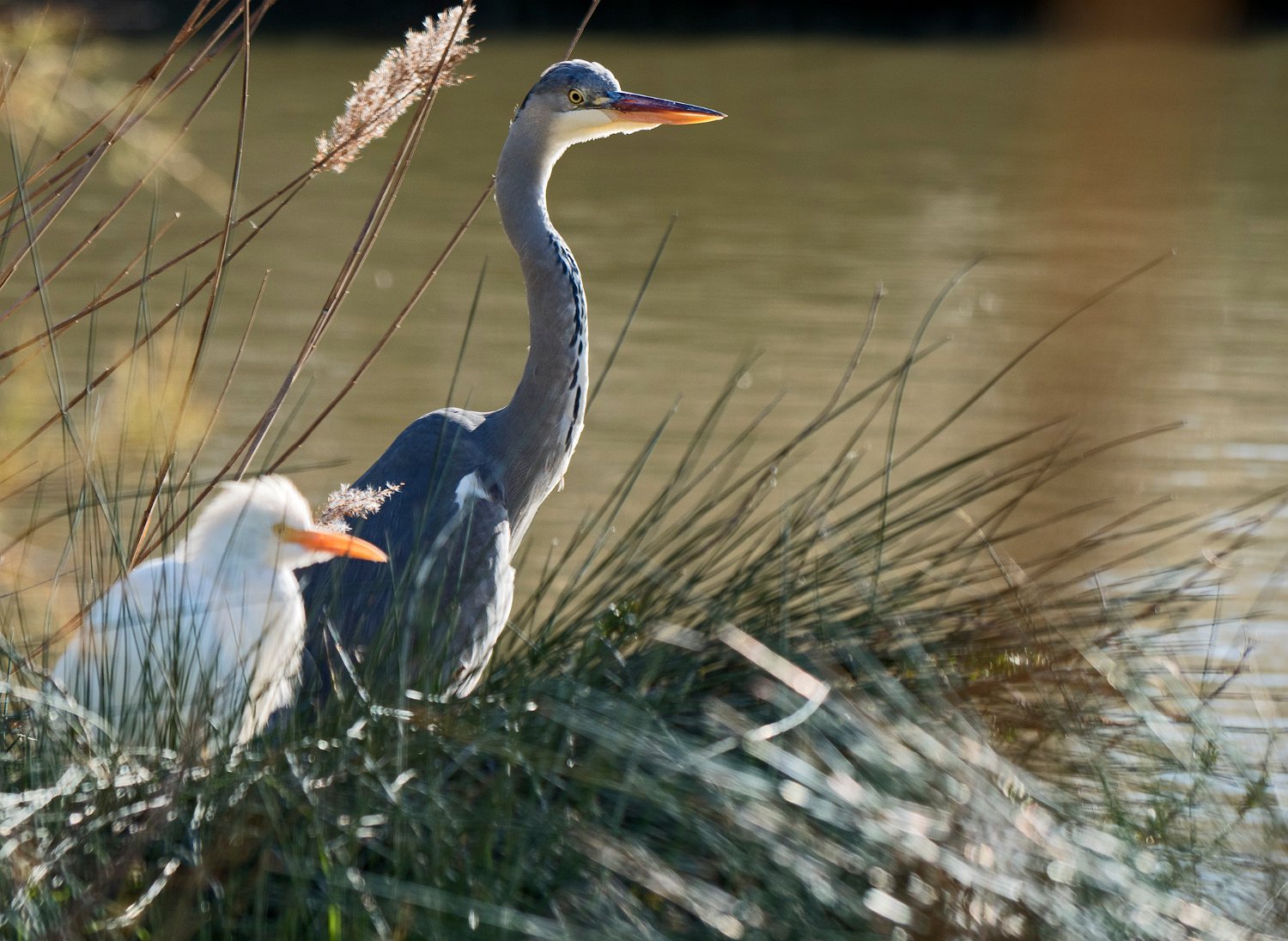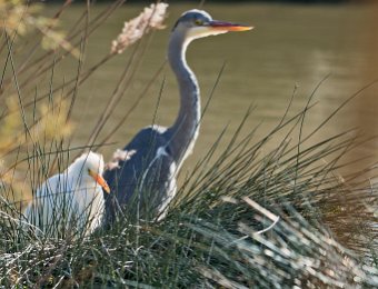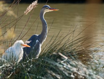 Héron cendré et héron garde boeuf