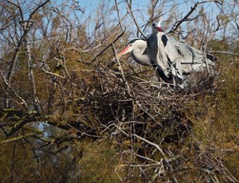 Couple de hérons cendrés sur leur nid
