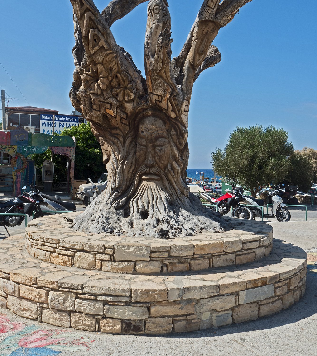 Olivier sculpté à l'entrée de Matala