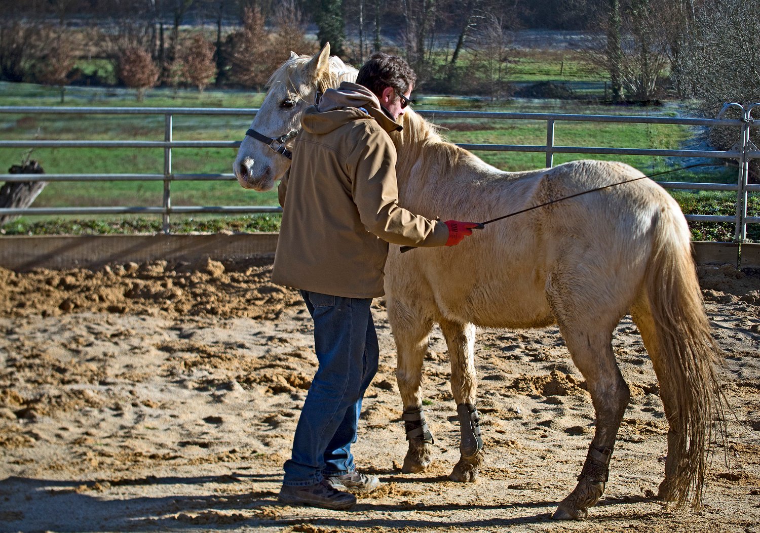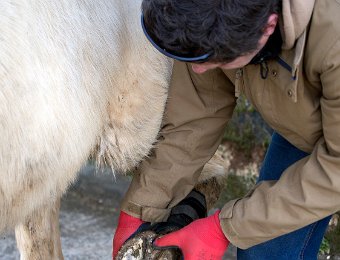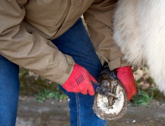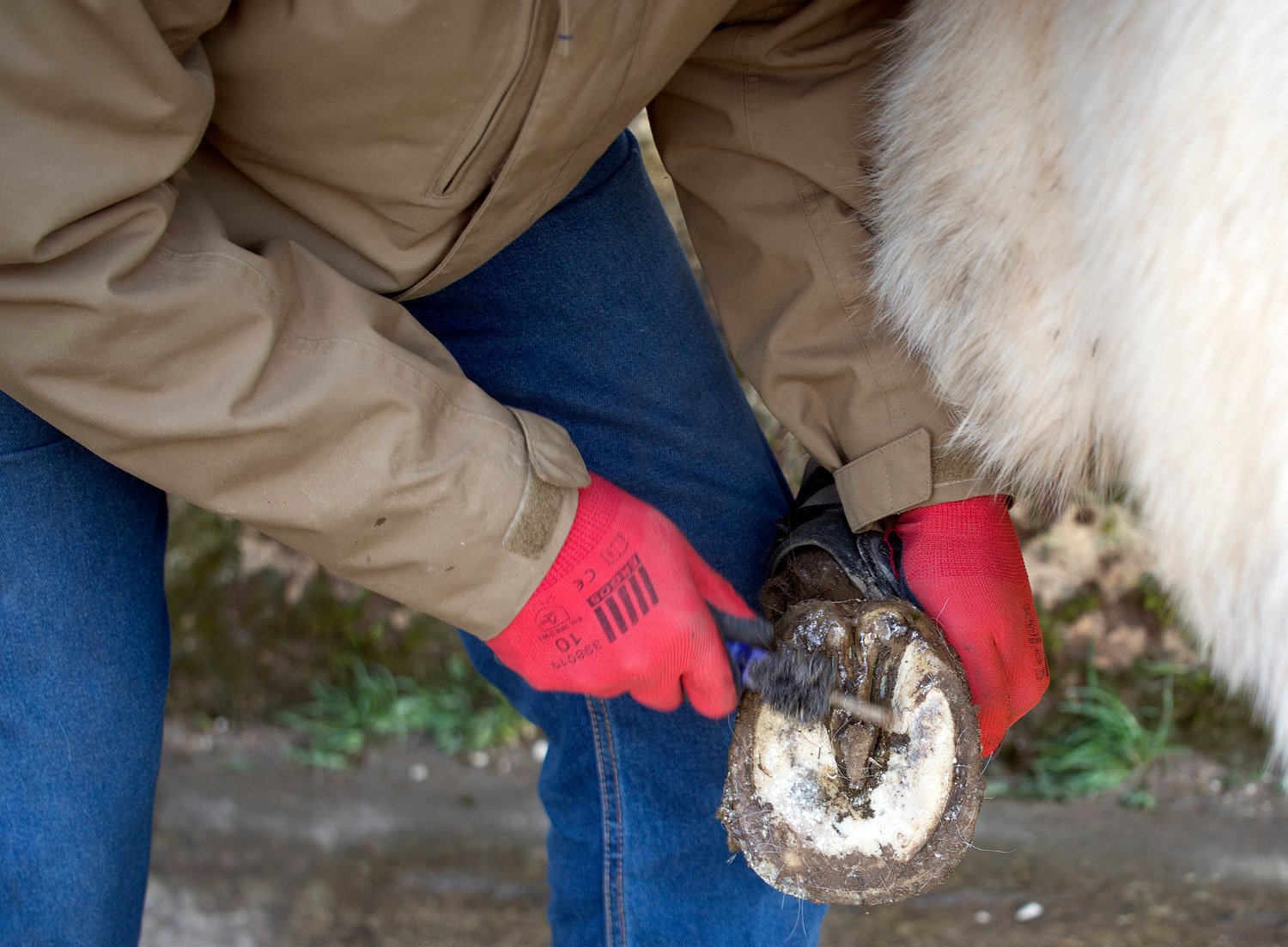 Nettoyage des sabots avant la pose des guêtres