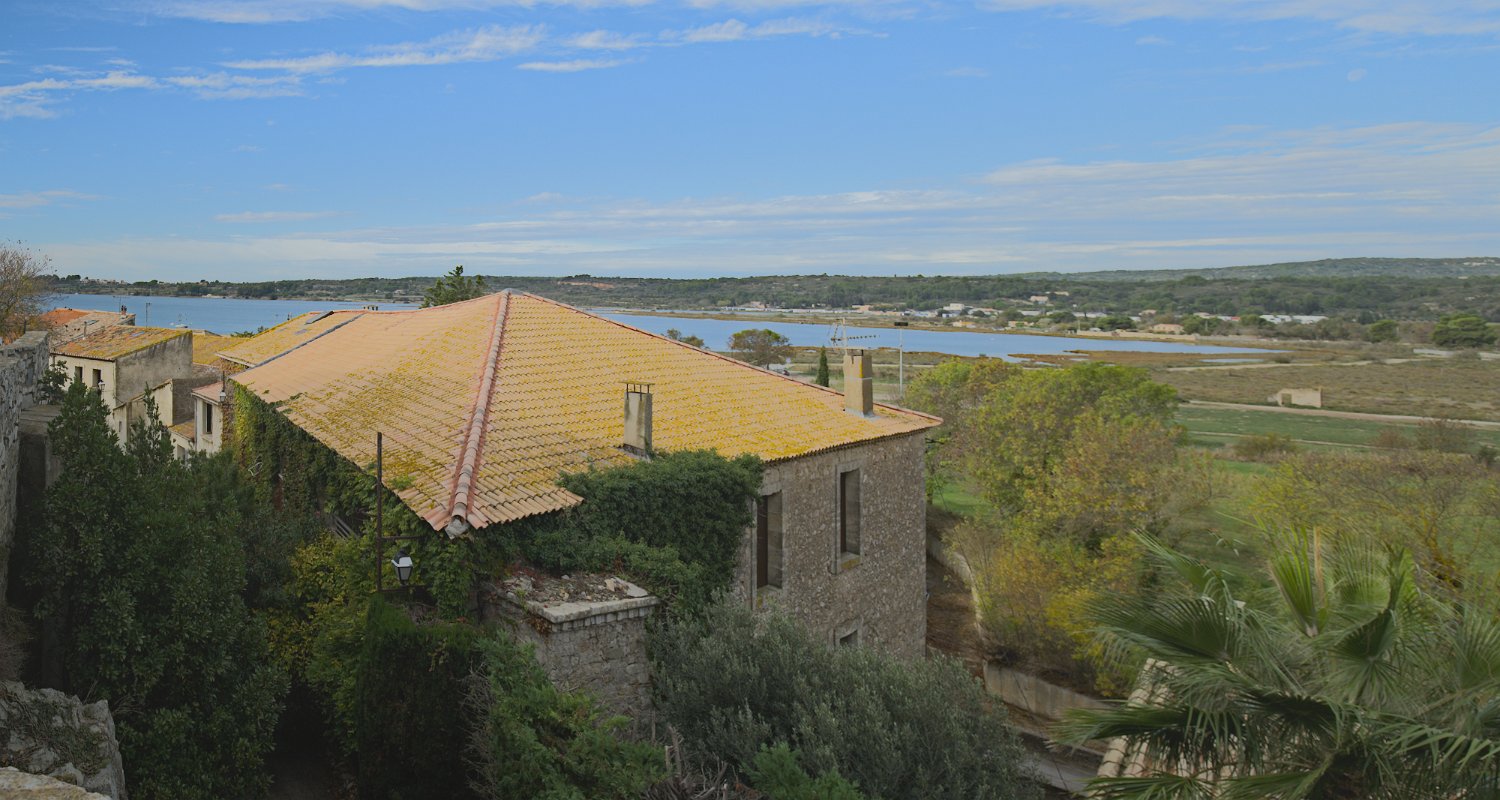 1Vue du village depuis les rives de l'étang de Taux