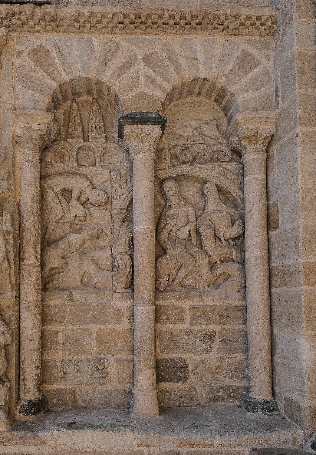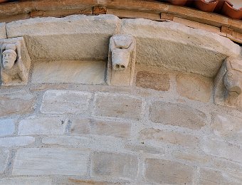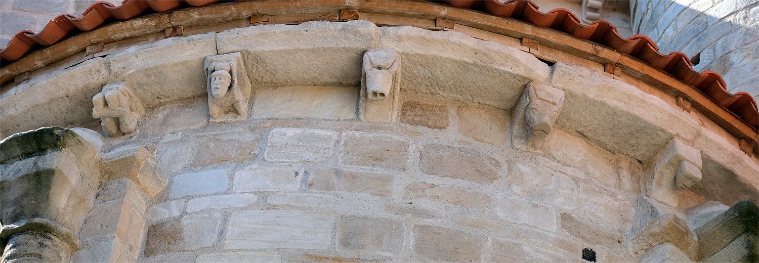 Abbatiale Saint-Pierre - Sculptures en haut du mur de la photo précédente