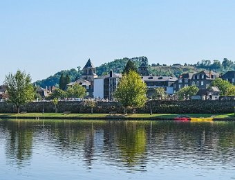 Vue sur Beaulieu depuis la rive gauche de la Dordogne