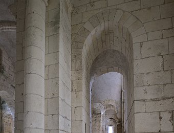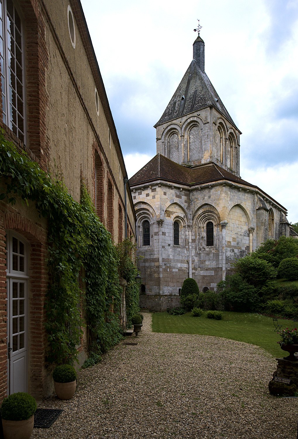 Cour intérieure du château- Le château (à gauche) et l'église romane
