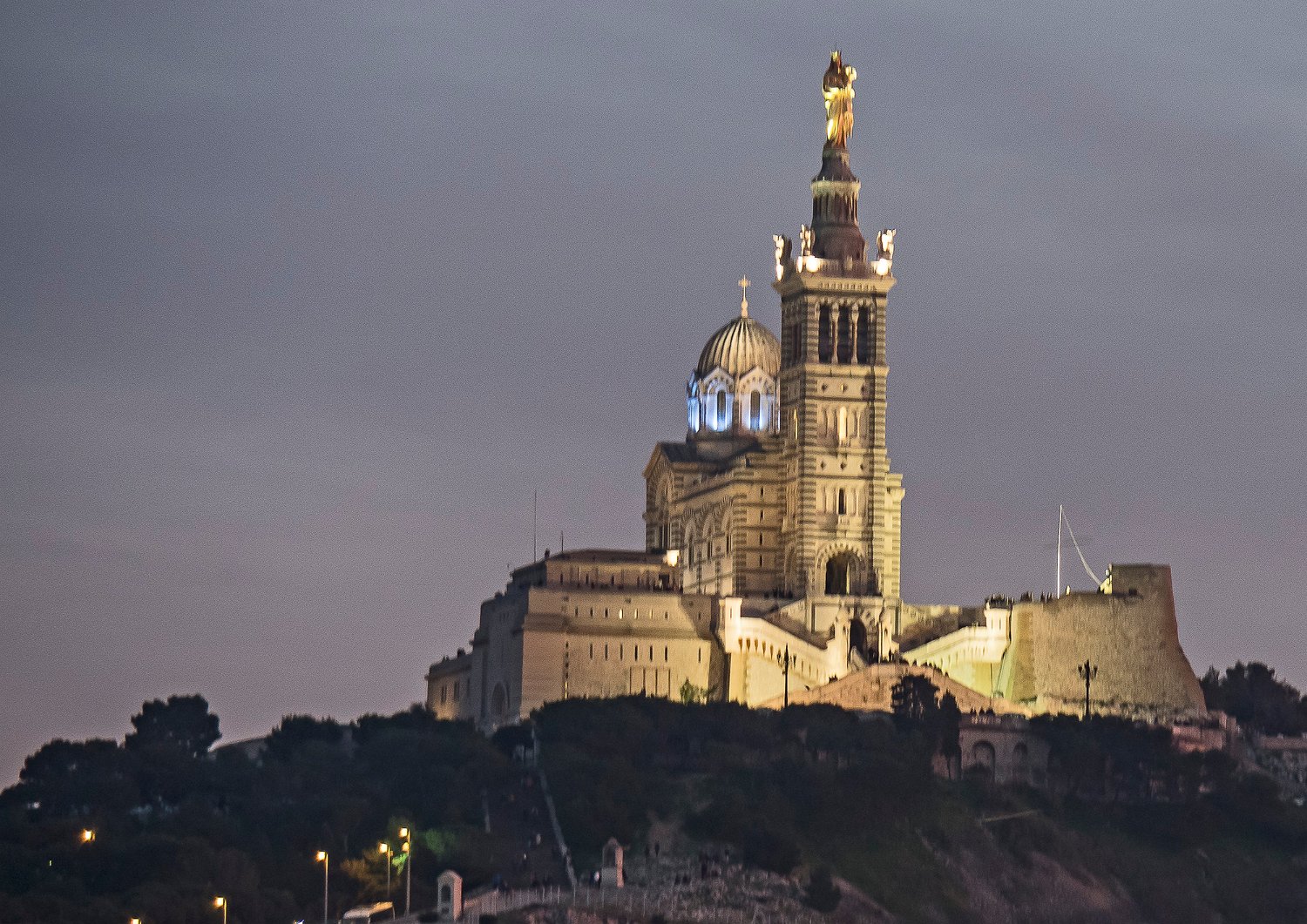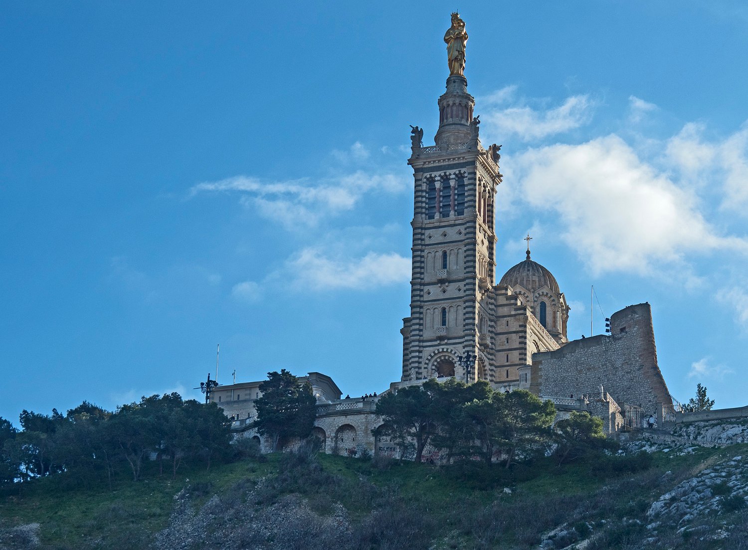 Basilique Notre Dame de La Garde, vue du pied de la colline