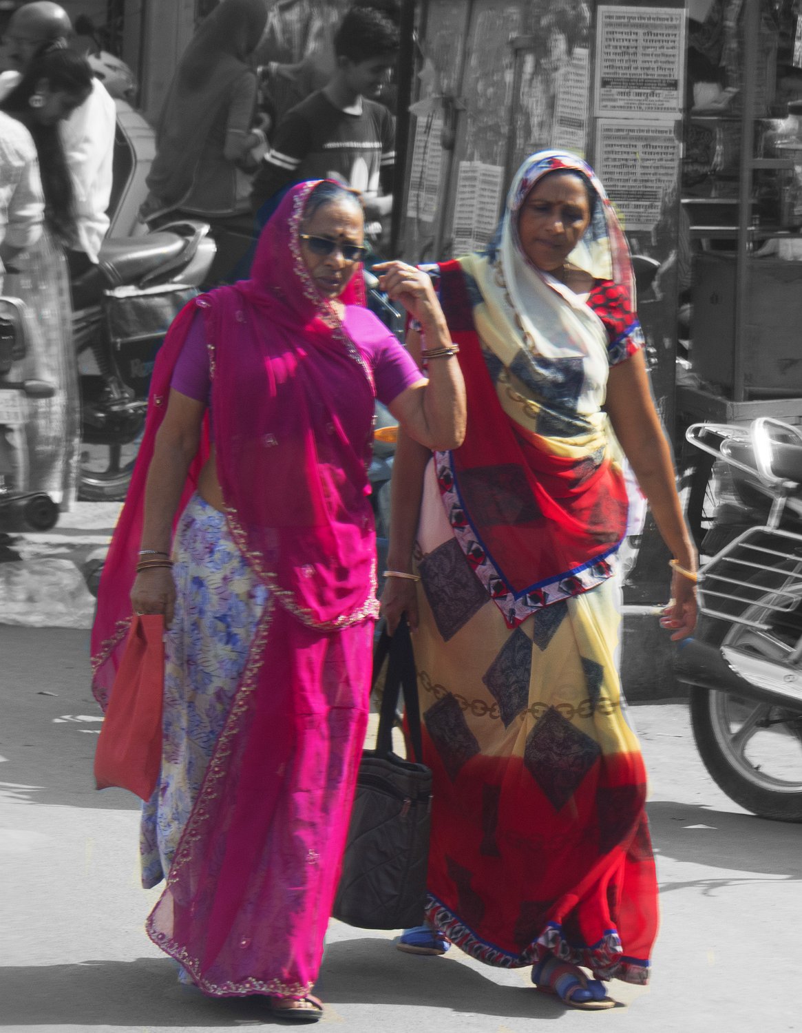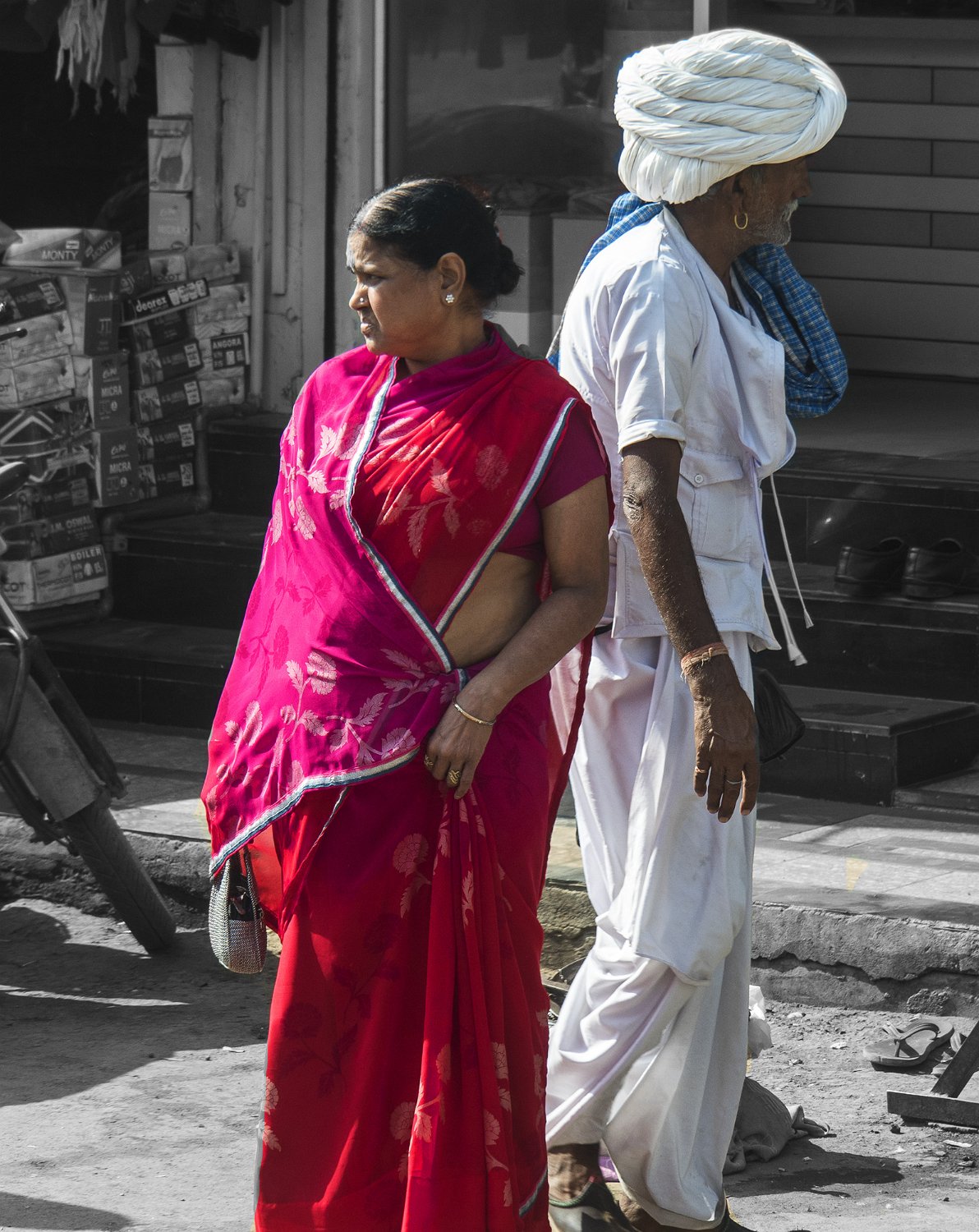 17Turbans Le turban est une pièce essentielle du costume masculin traditionnel, notamment au Rajasthan. Il a bien d’autres usages que de servir d’ornement ou de protéger du soleil : tapis de sol, oreiller pour la sieste, corde, voire filtre à eau dans les régions arides. Les couleurs vives des turbans du Rajasthan permettaient aux hommes d’être plus facilement repérables dans le désert du Thar. La couleur et le nouage du turban informent sur la profession, la condition sociale, la case, la religion, la situation matrimoniale de celui qui le porte.