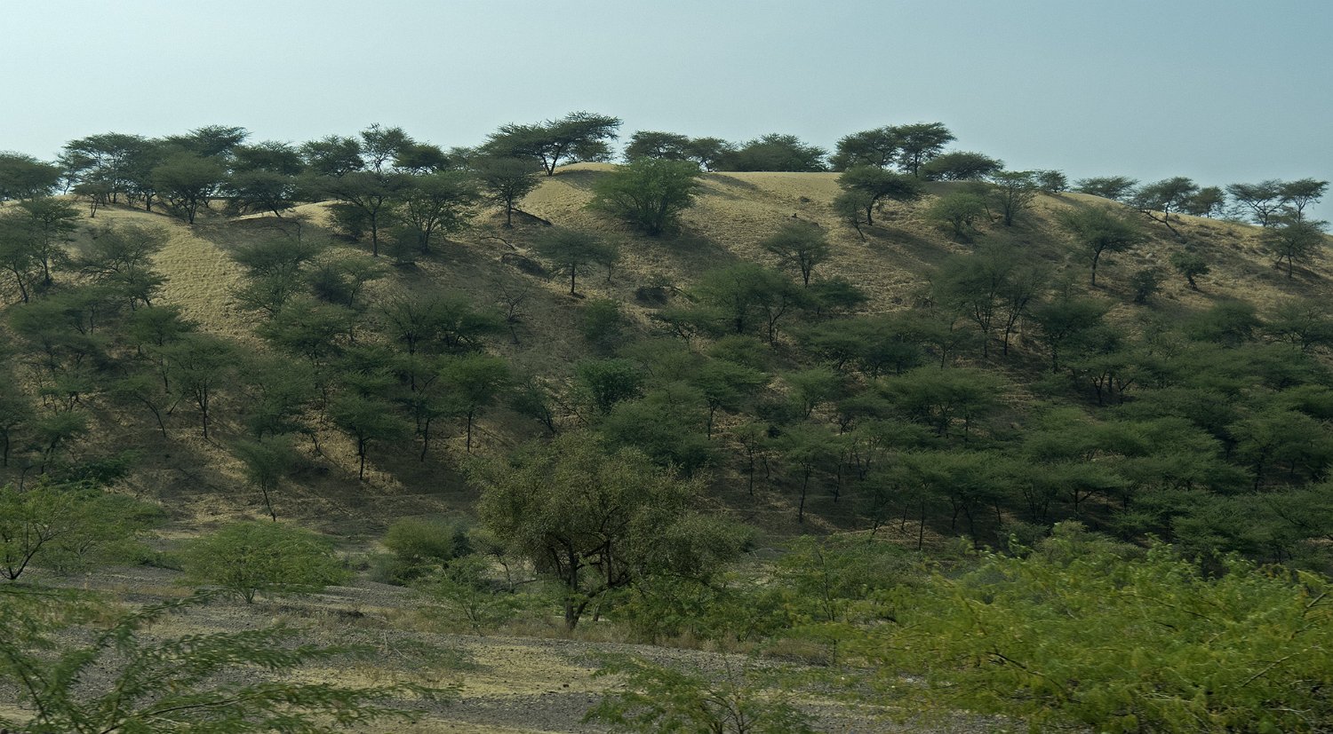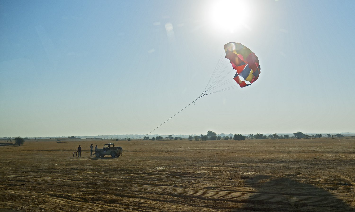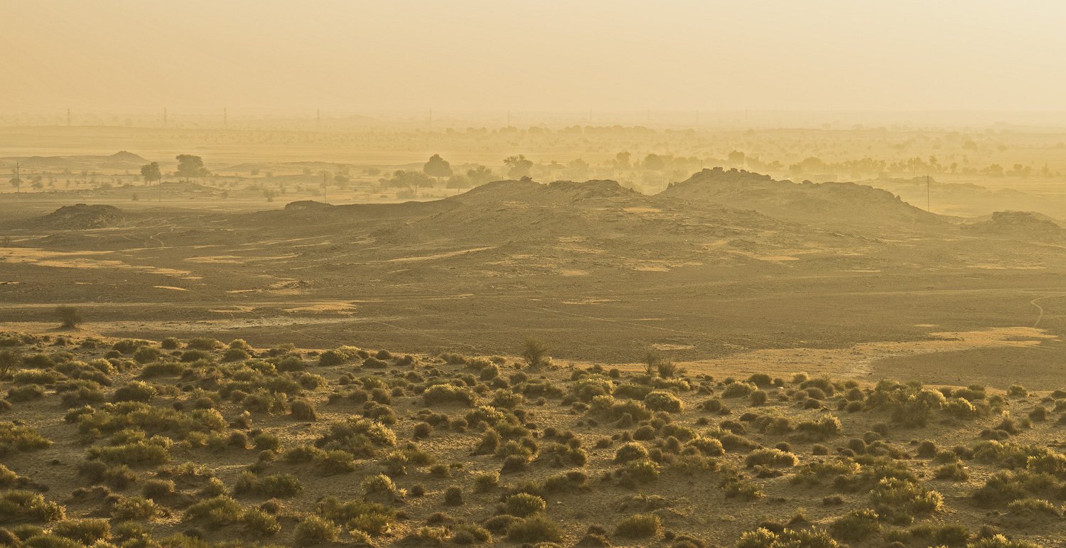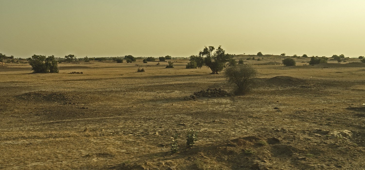 Désert du Thar- végétation typique Paysage agricole (agrumes) en bordure du désert du Thar  Le canal Indira Gandhi a permi de développer une agriculture productive dans le désert du Thar. Il est alimenté par l'eau de fleuves de l'Himalaya. Il fait 470 km de long. Désert du Thar- parachute ascensionnel Désert du Thar- Ancienne exploitation de matériaux  Les arbres et arbustes ont été préservés...