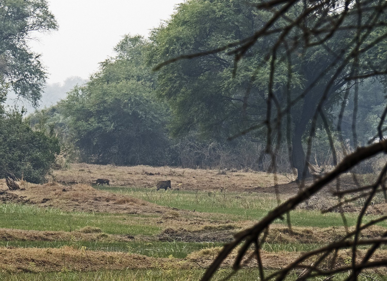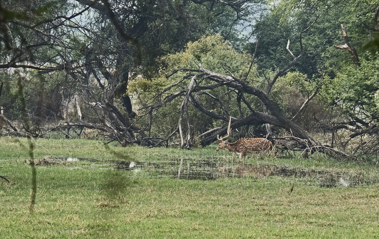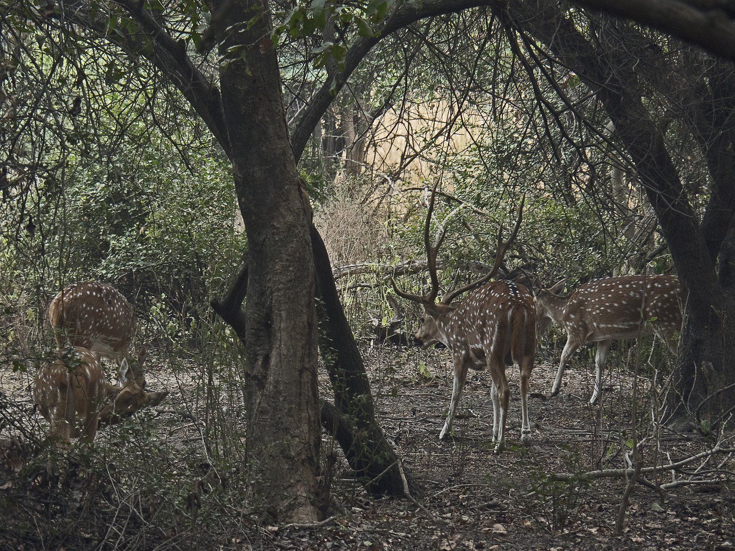 Cerf axis mâle Chacal Sangliers indiens à crète Singes