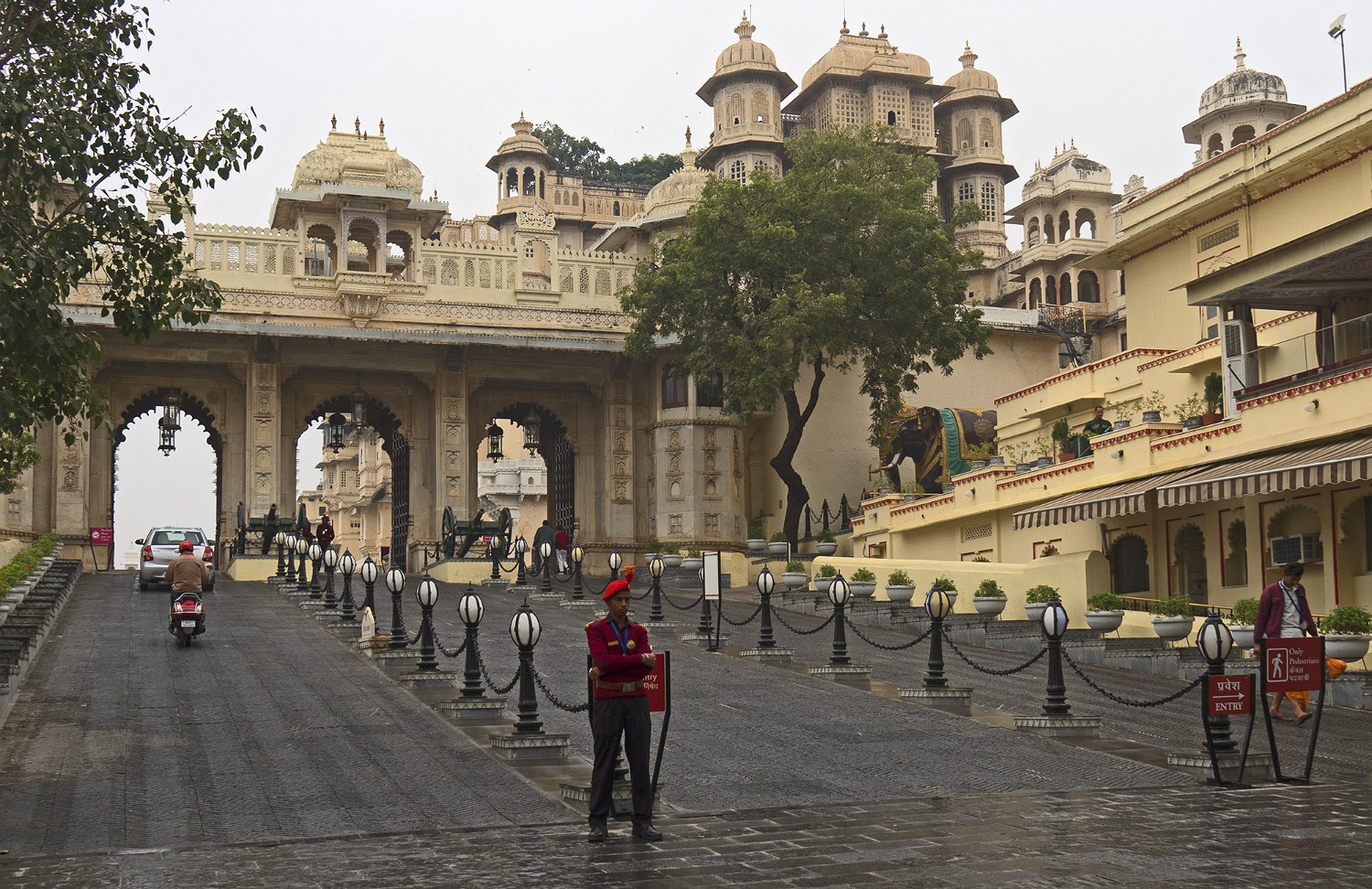 44La grande cour (Maneh Chowk) et l'entrée du city palace (Tripolia gates) - Vue sur la ville d'Udaipur