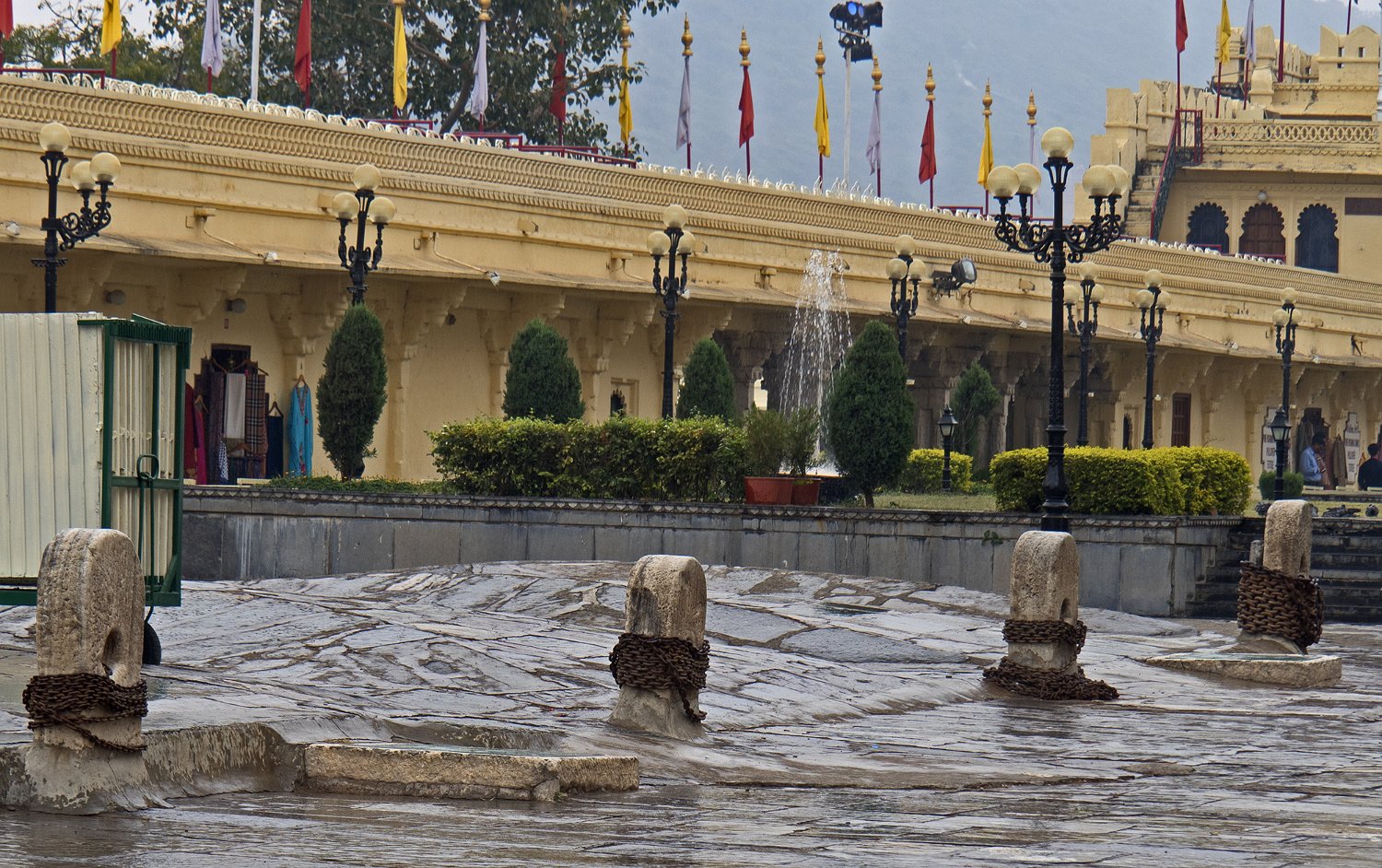 7Dans la cour d'entrée (Manesh Chowk), bosses de repos des éléphants Les éléphants étaient attachés par une patte aux piliers et pouvaient se coucher en se calant sur les bosses