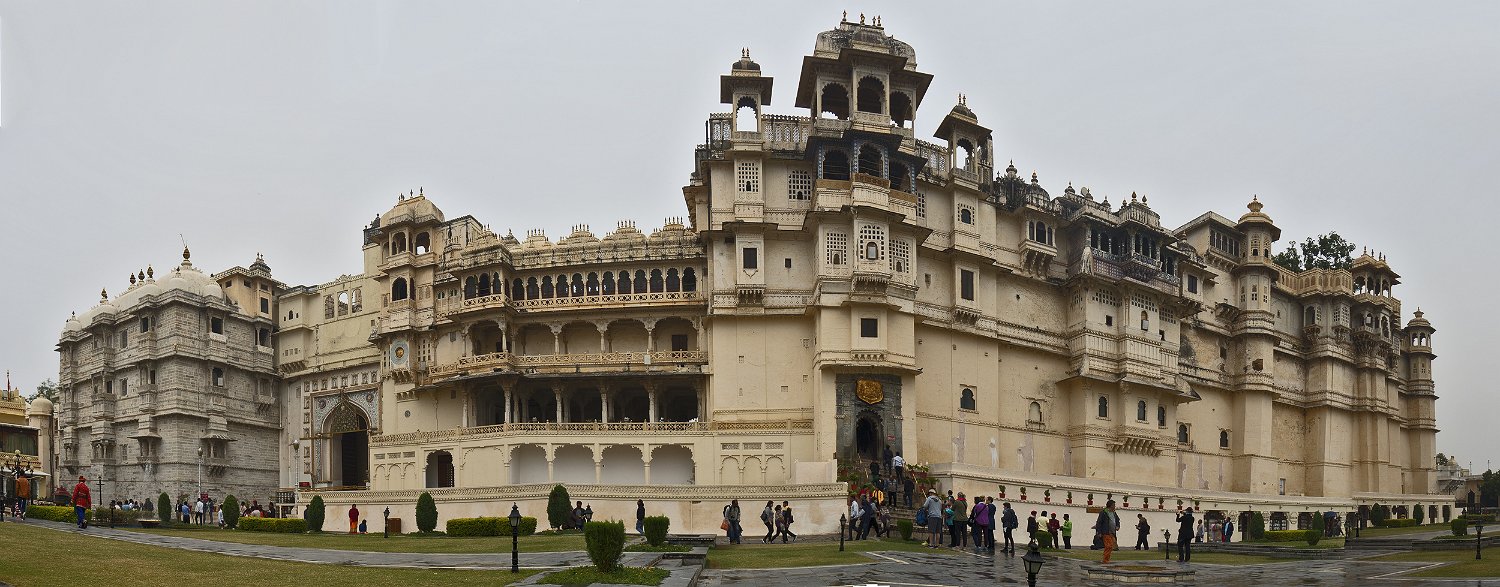 Le City Palace d'Udaipur (Inde - Rajasthan) est un ensemble de onze palais construits en 1559 par le Maharana Udai Singh (1522-1572) en même temps que la ville d'Udaipur. Il a fait l'objet d'aménagements complémentaires par ses successeurs durant près de 3 siècles. Il est construit en granit et en marbre et très richement décoré de marbre, de miroirs, d'argent et de peintures murales.