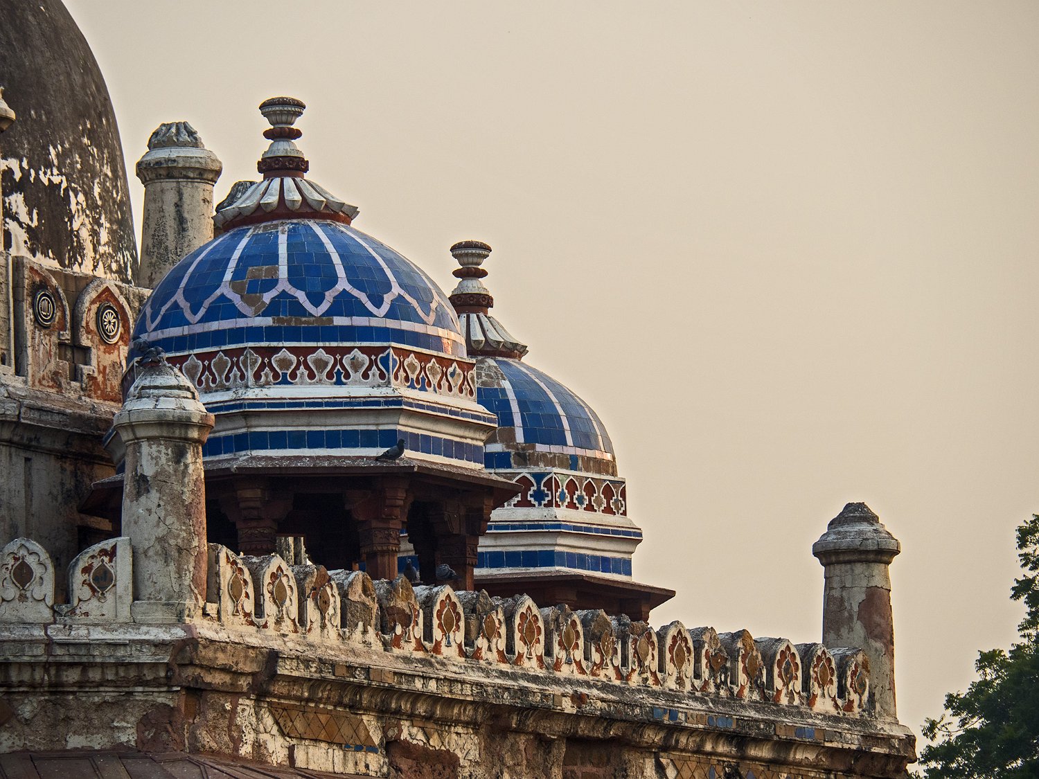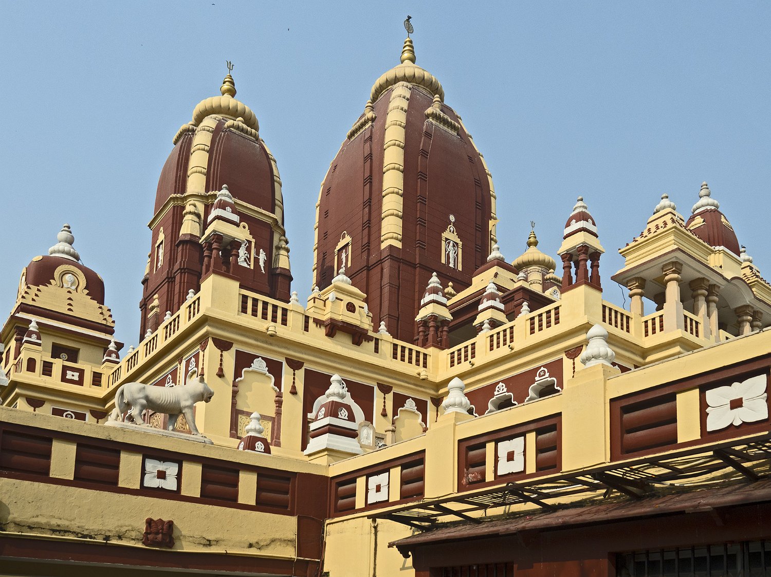 Birla Mandir (temple de Laxminarayan)-vue d'ensemble  Birla Mandir est un terme générique qui désigne différents temples hindous construits par la famille Birla à travers l'Inde. Delhi possède l'un d'entre eux,  dont la construction a commencé en 1933,et qui  est dédié à Laxminarayan (qui se réfère au dieu Vishnu) Birla Mandir- Façade principale Birla Manir- Détail des toitures Tombe de Humayun- panoramique du site  La tombe de Humayun  est un ensemble d'architecture moghole, en fait une véritable nécropole. Le site  abrite la tombe de l'empereur Humayun et celles de sa famille : ses femmes Biga Begum et Hamida Begum ainsi que de Dara Shikoh, son arrière-arrière-petit-fils.De nombreux autres empereurs moghols y sont également enterrés.