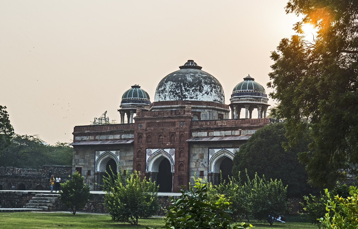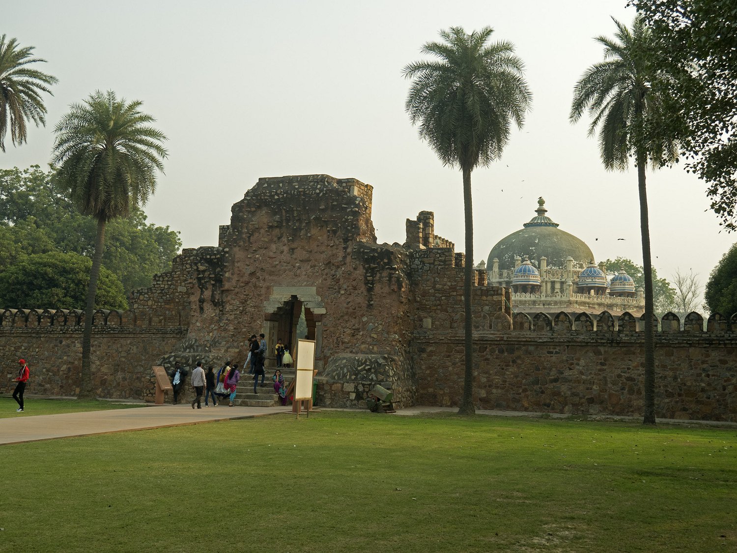 Tombe de Humayun- Mosquée D'Isa Khan Tombe de Humayun- Porte Tombe de Humayun Avenue dans New Delhi et bâtiments officiels  New Delhi est une ville nouvelle créée au début du XXe siècle par les Britanniques qui ont voulu déplacer la capitale de l'empire britannique de Calcutta  vers une position plus centrale et symbolique.