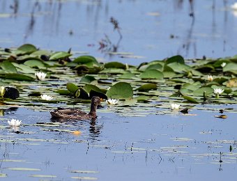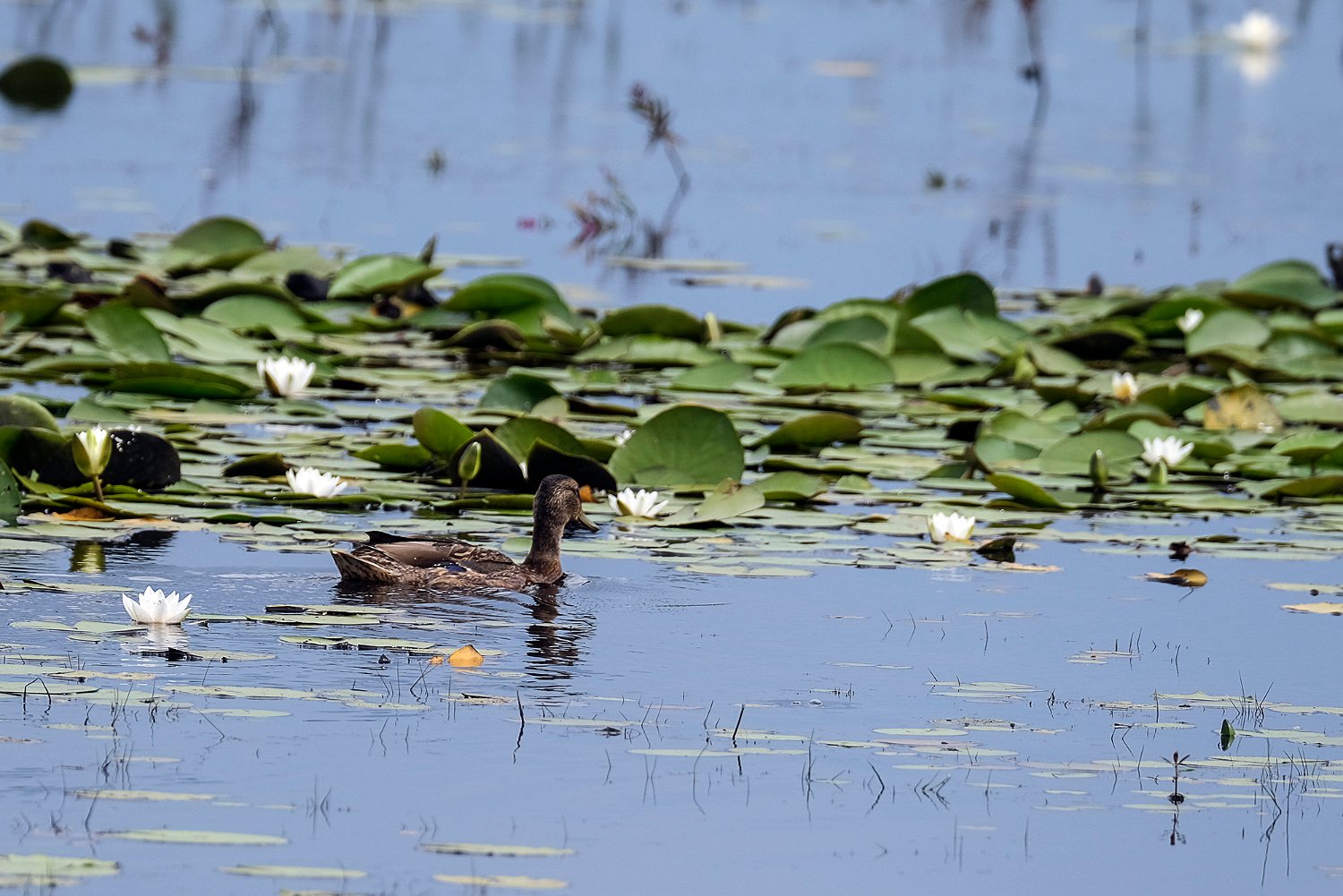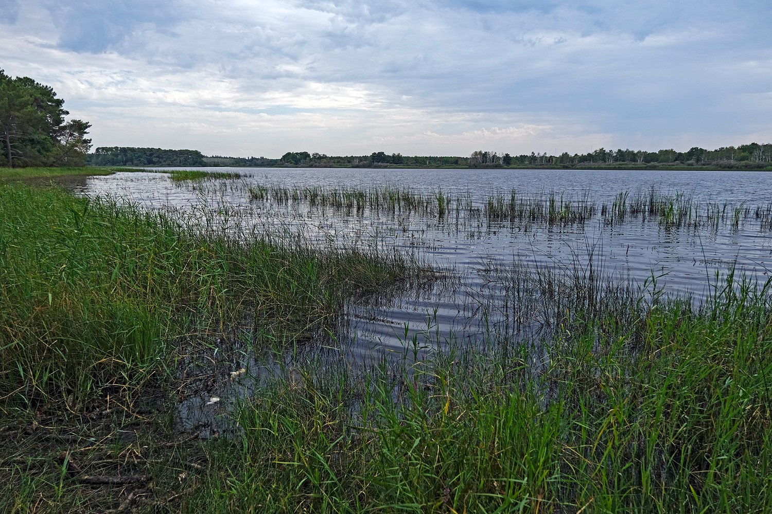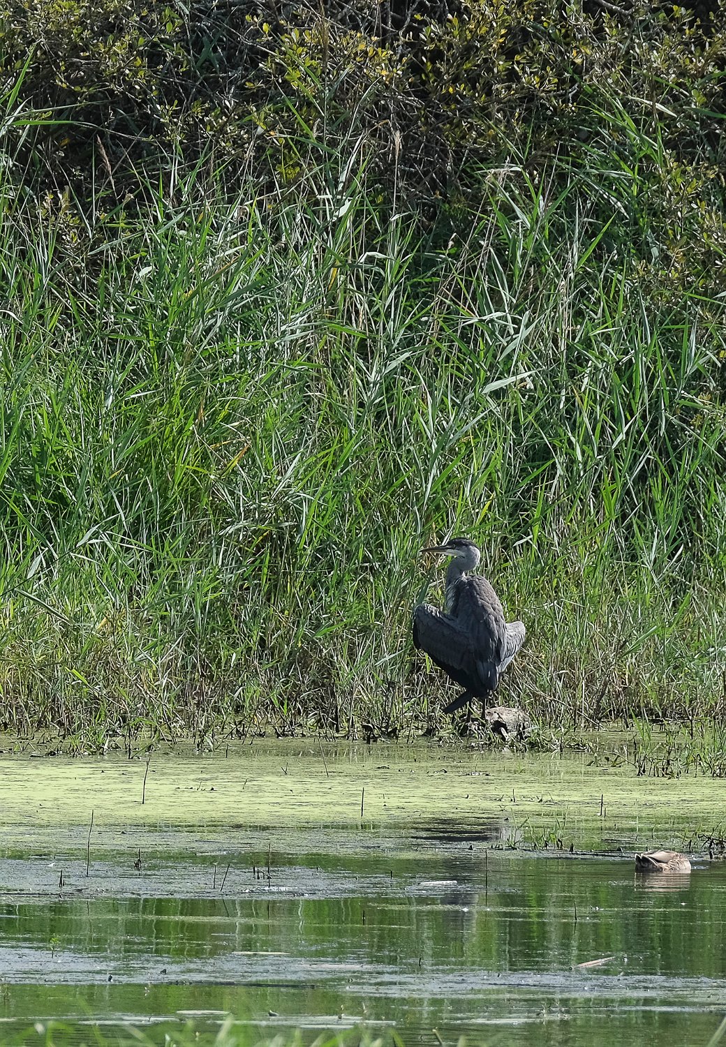 Cet étang d'une centaine d'ha abrite une base de loisirs. Mais 7 km de sentiers et trois observatoires aménagés dans le fond de l'étang permettent de découvrir la faune aviaire des étangs de la Brenne. La forte chaleur de ce jour d'août limitait l'activité des oiseaux. Les photos ont été prises avec un Fuji XT4 équipé du zoom 100-400mm (équivalent 200-600 mm en 24x36)