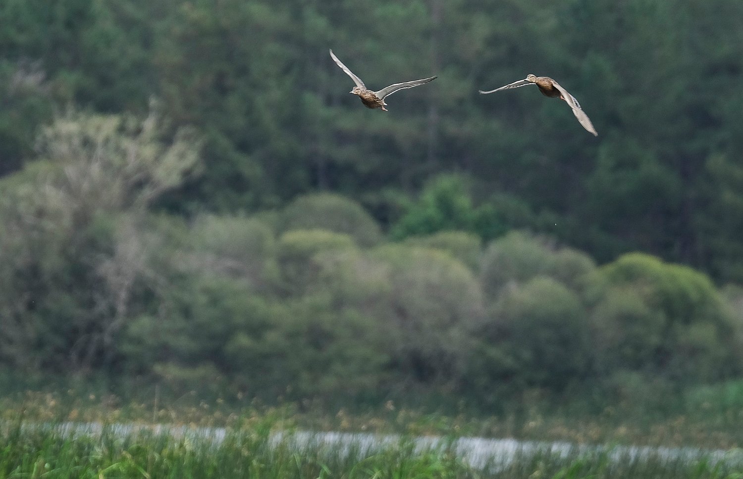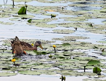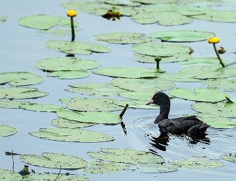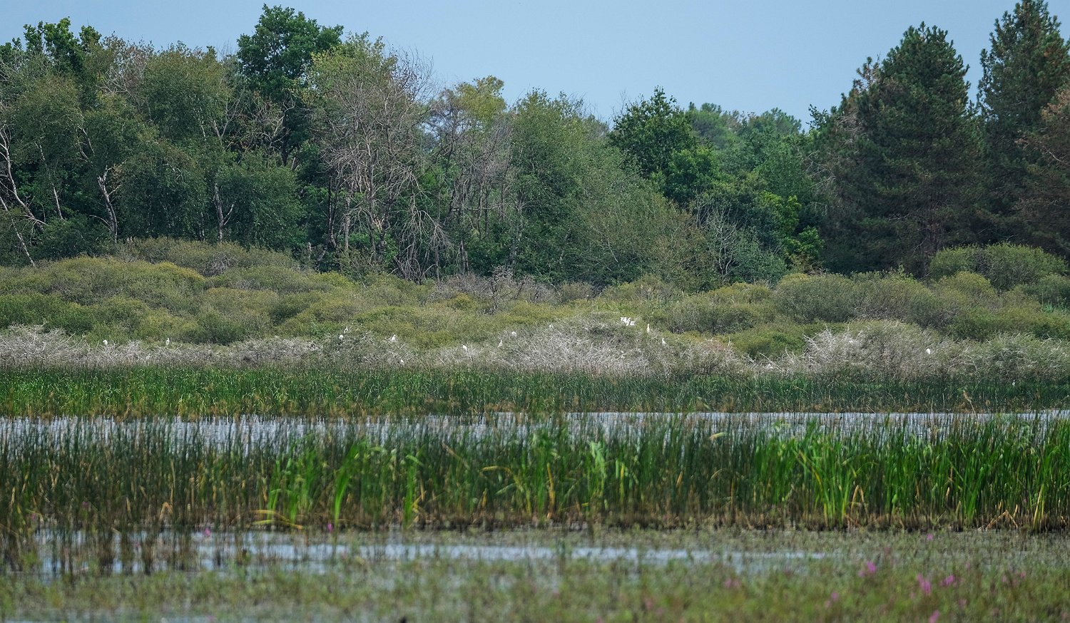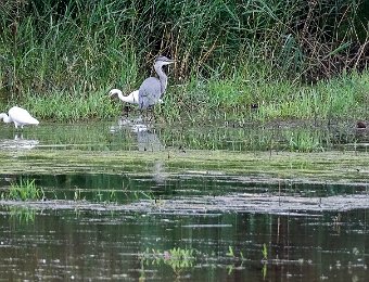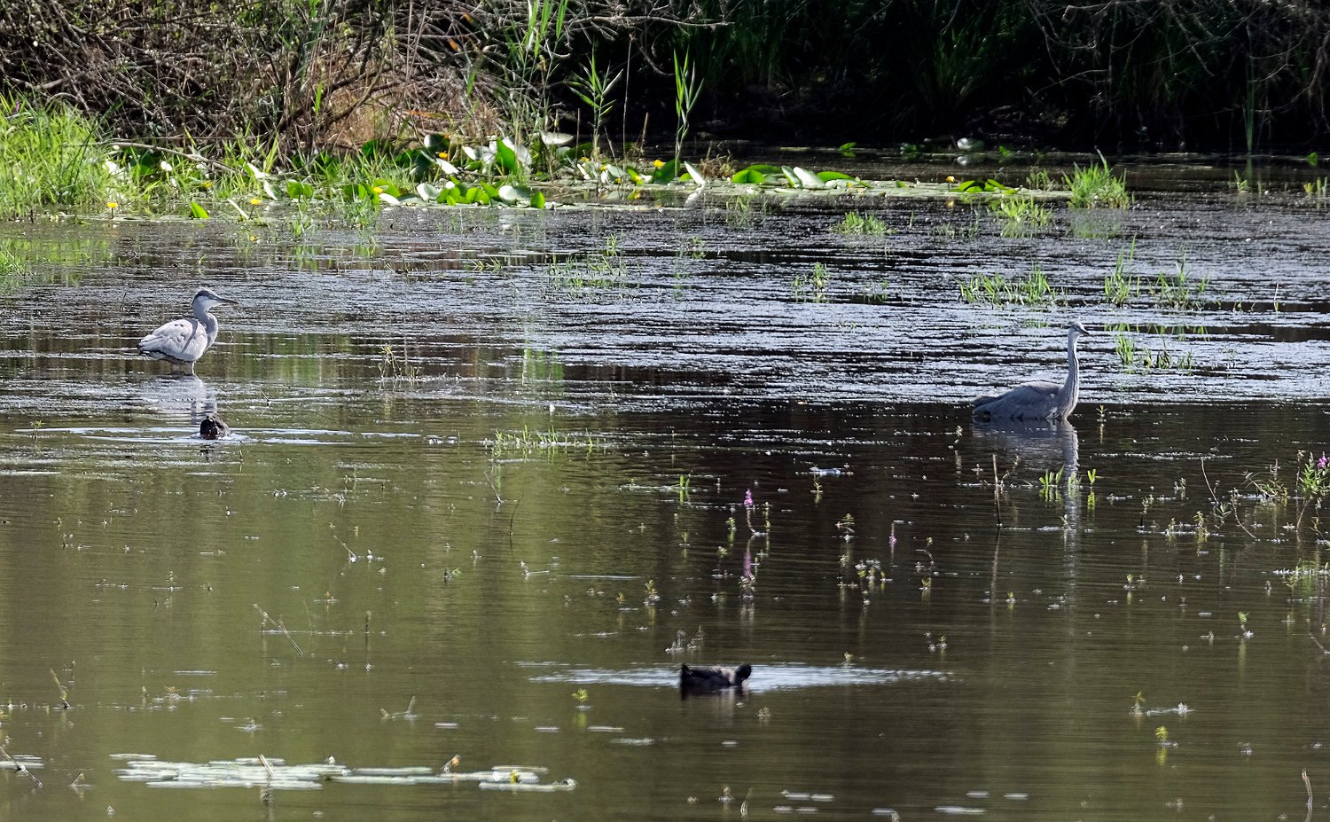 Paysage typique de l'étang (aigrettes, canards souchets et foulque macroule)