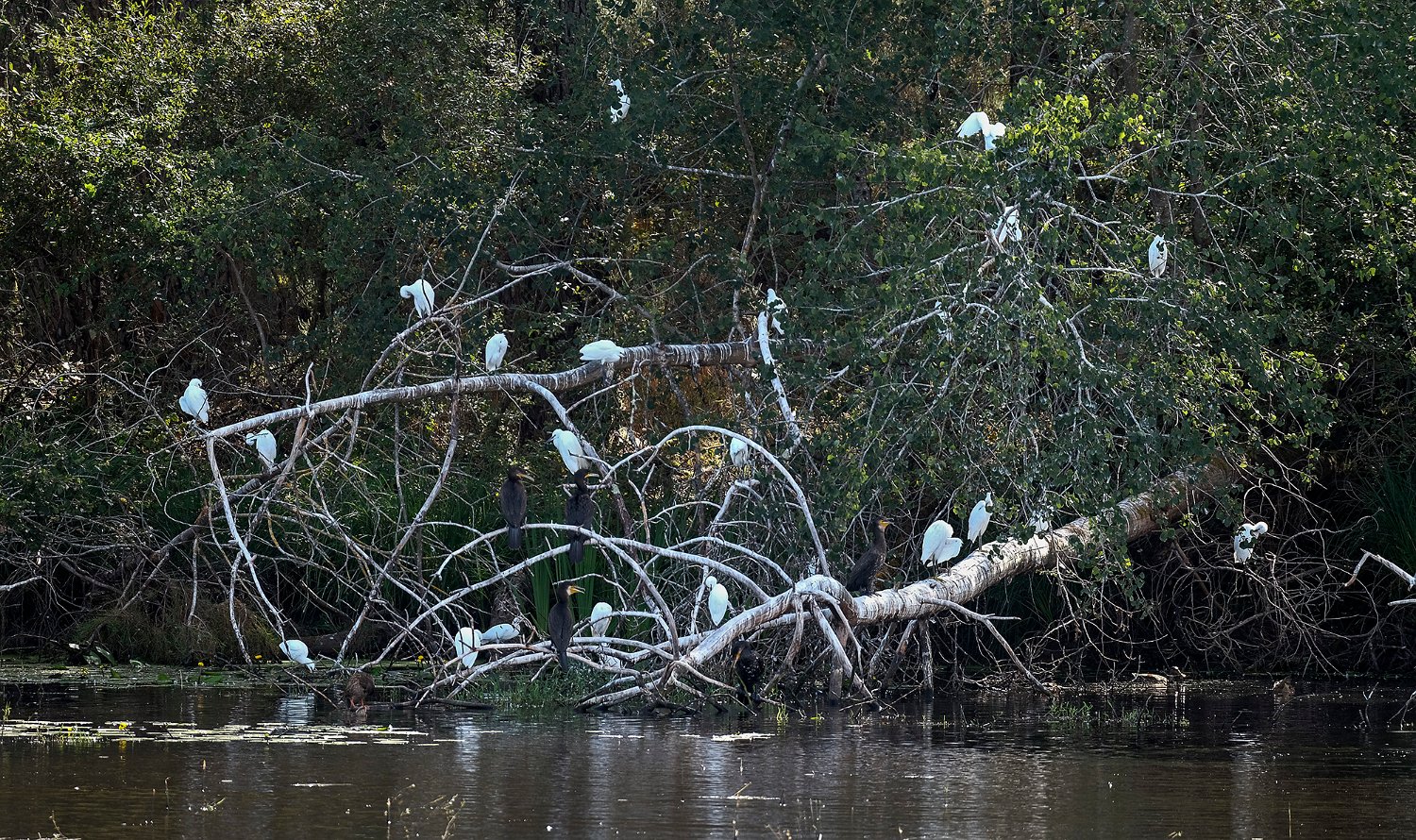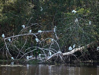La héronnière. On distingue quelques grands cormorant au centre bas de l'image