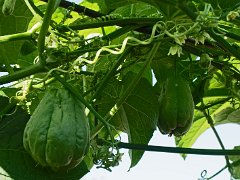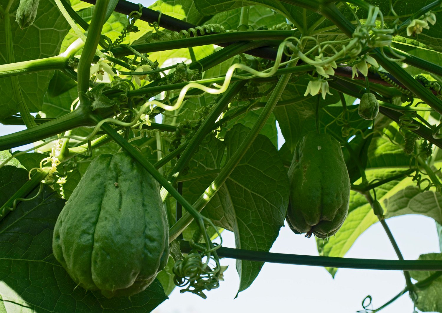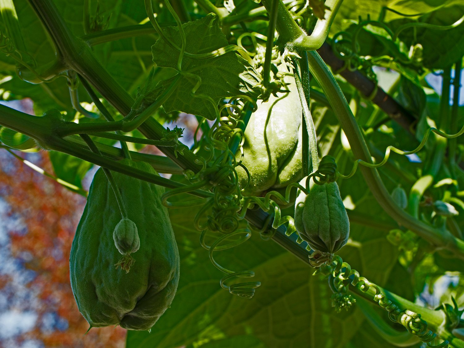 La chayotte est une plante attachante, à tous les points de vue : physique, c'est une plante grimpante, esthétique, c'est une belle plante toujours verte, culinaire, son fruit se prête à nombre de préparations délicieuses. Et elle est très facile à cultiver.