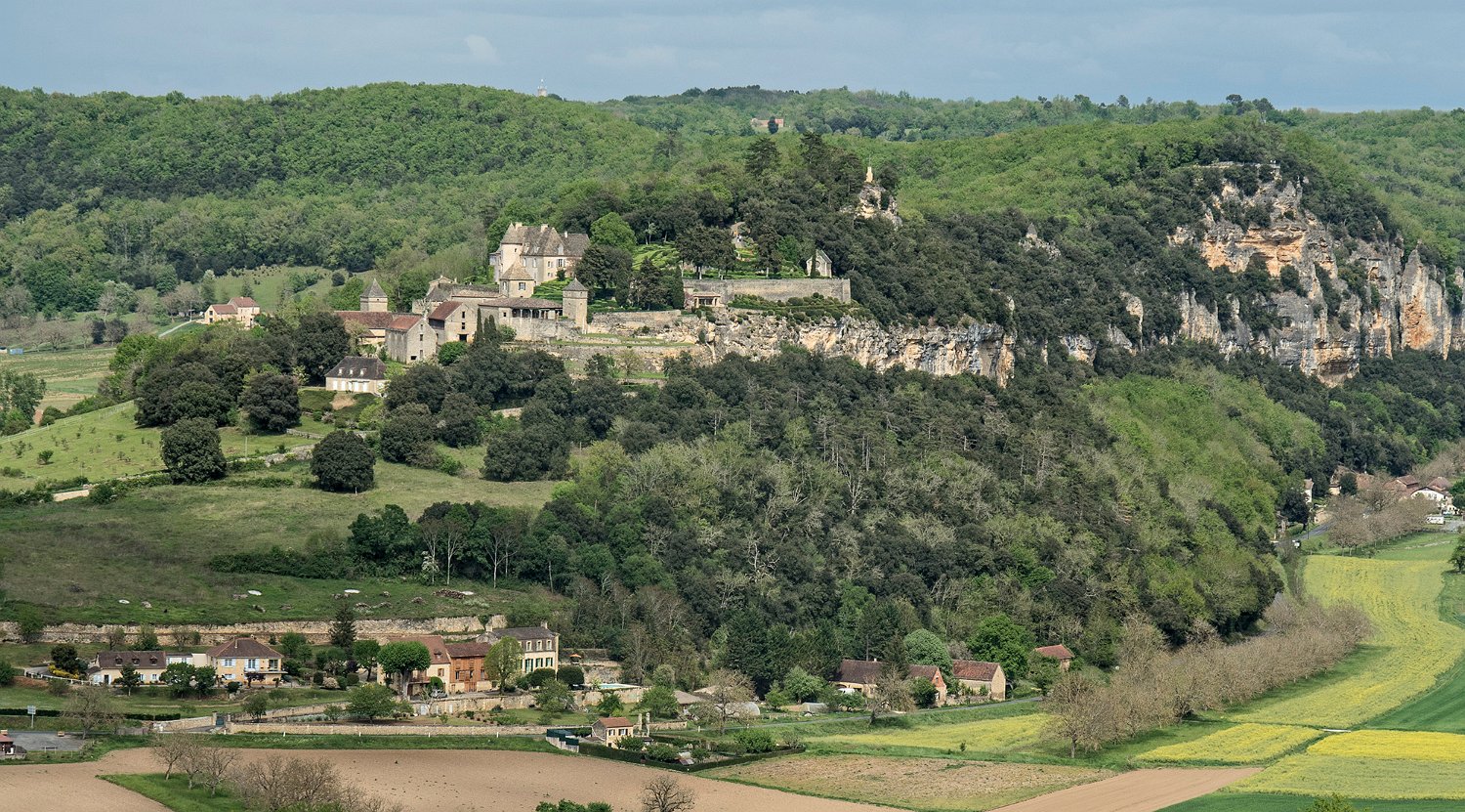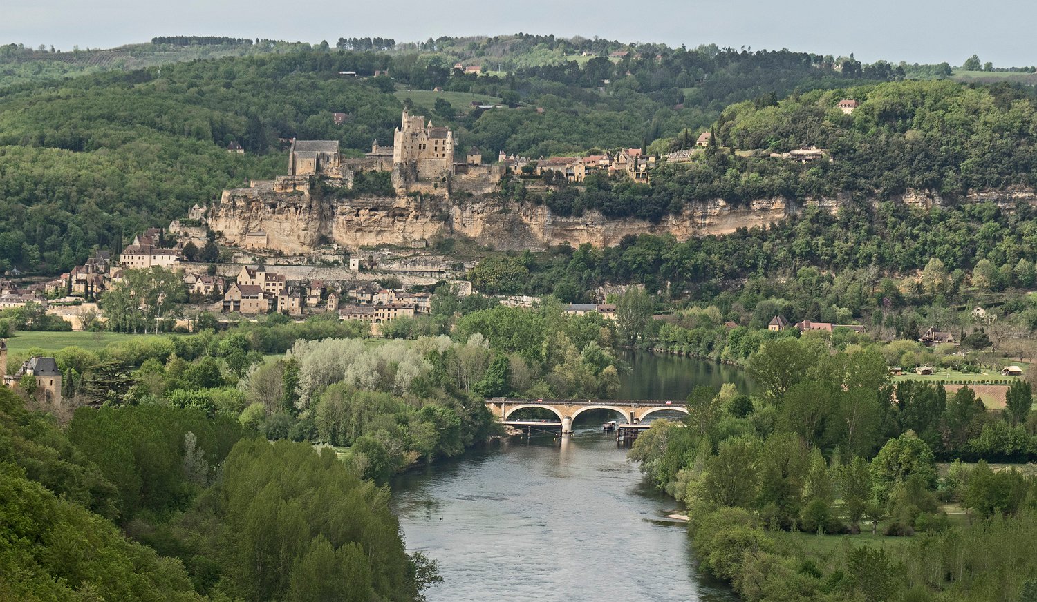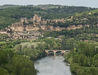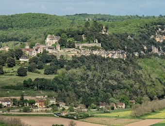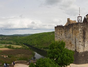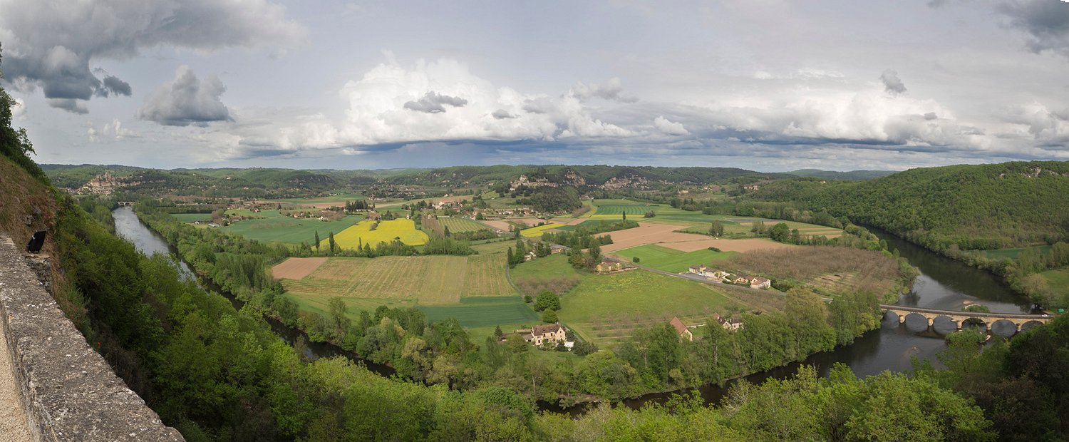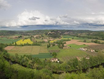 Panorama sur la vallée de la Dordogne- à l'extrème gauche au fond le château de Beynac, au centre le château de Marqueyssac