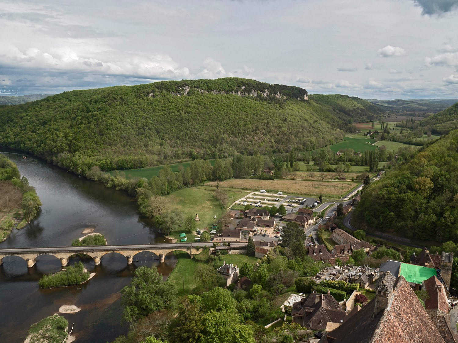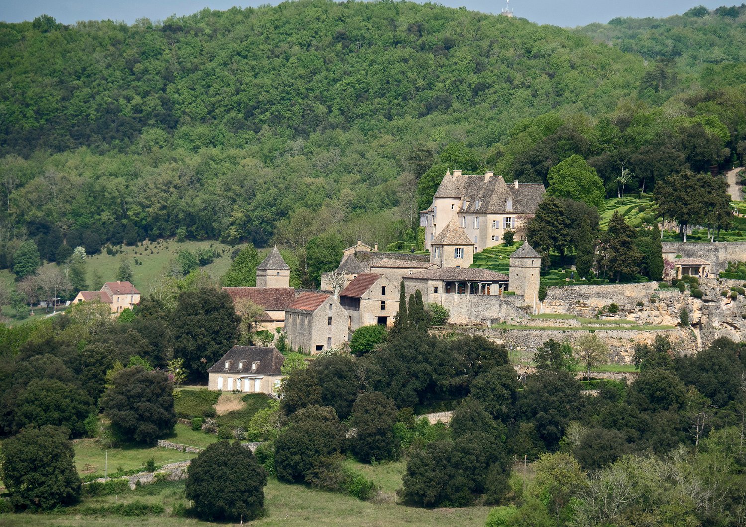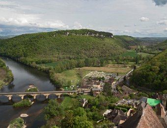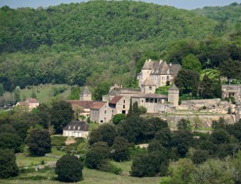 Panorama sur la vallée de la Dordogne- à l'extrème gauche au fond le château de Beynac, au centre le château de Marqueyssac