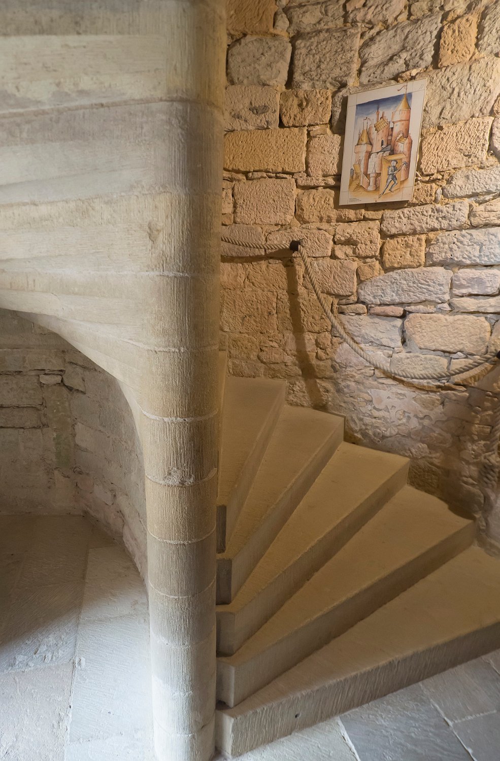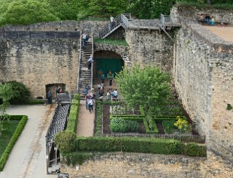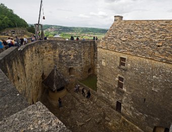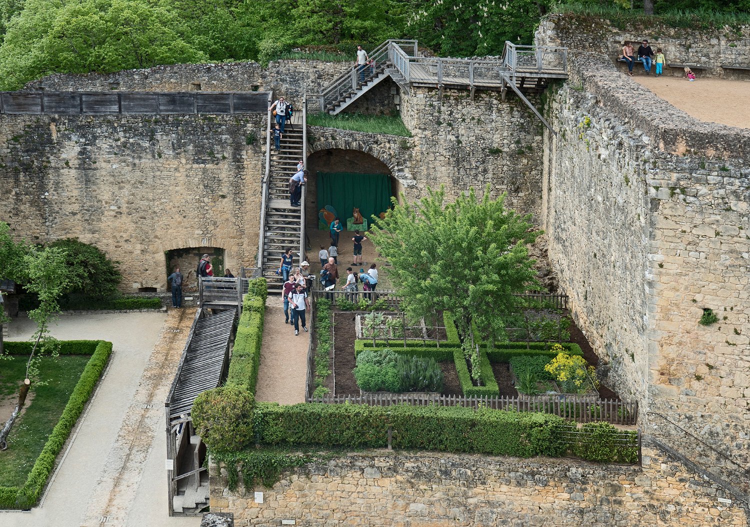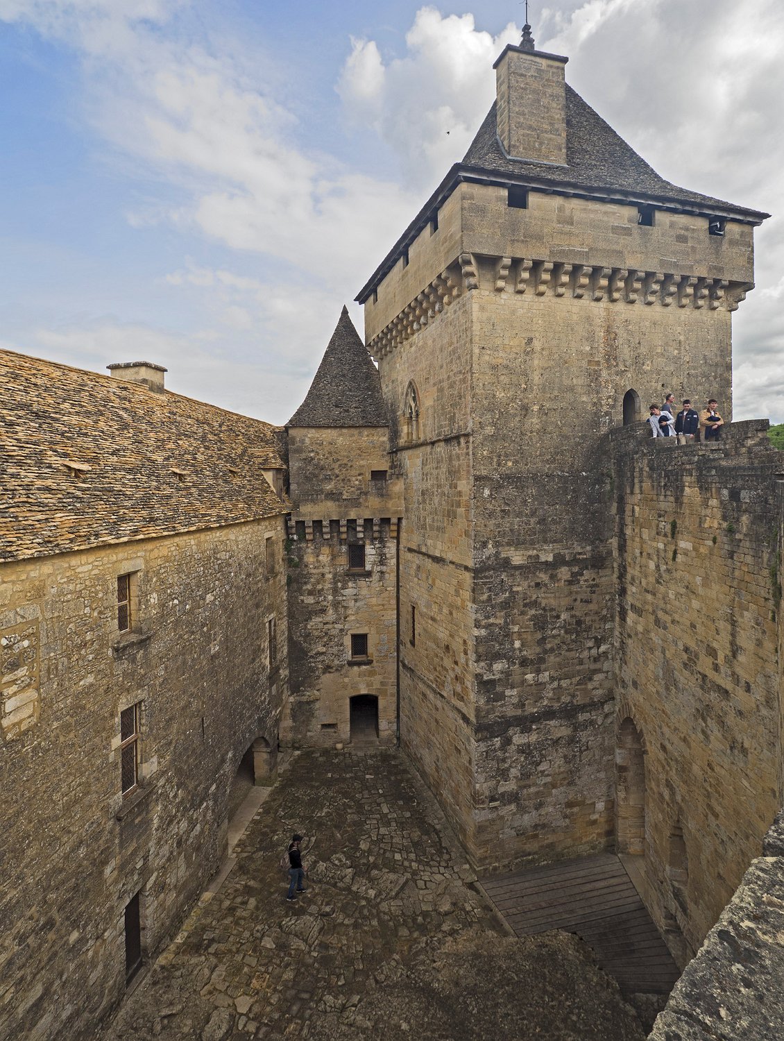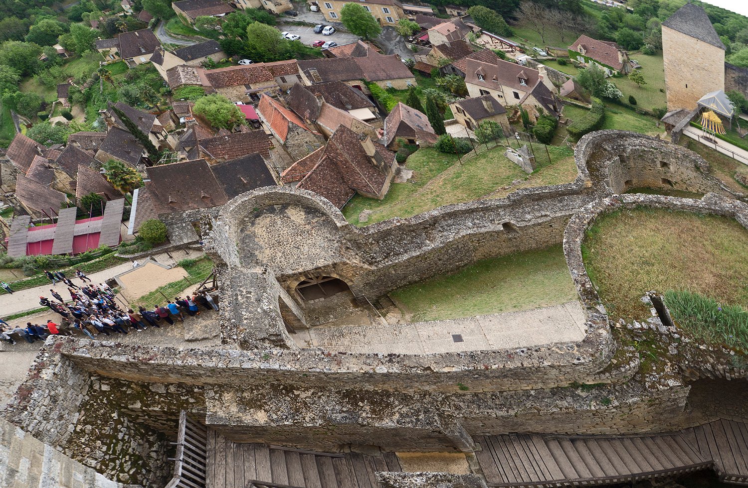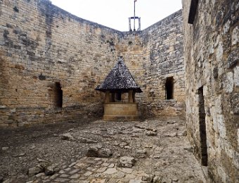Cour intérieure côté puits vue du chemin de ronde. Au fond à droite le corps de logis est