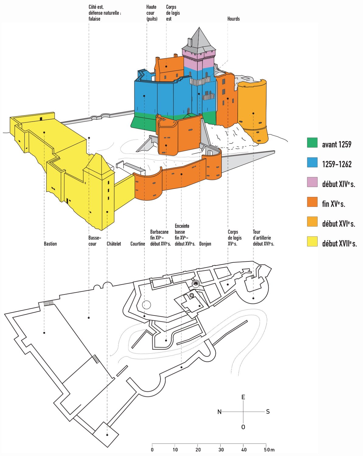 Enceinte basse s et vue sur le village- Au fond à droite le châtelet