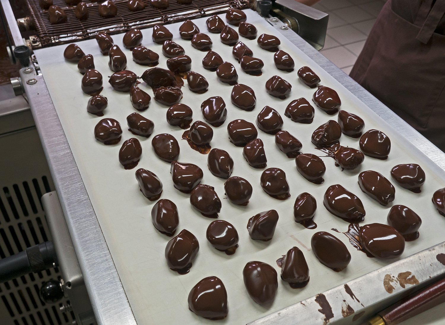 Chaine de fabrication de pruneaux enrobés de chocolat