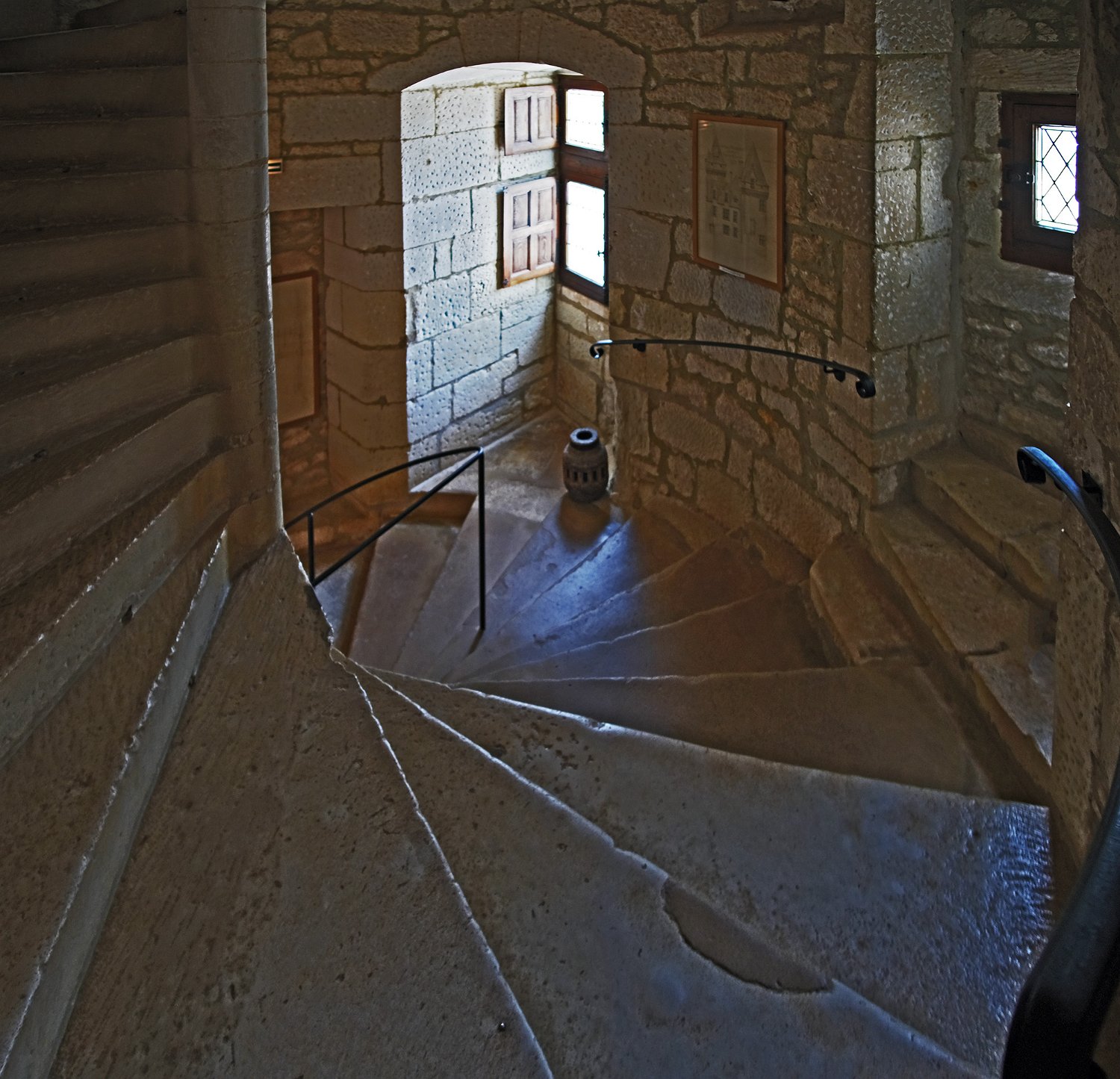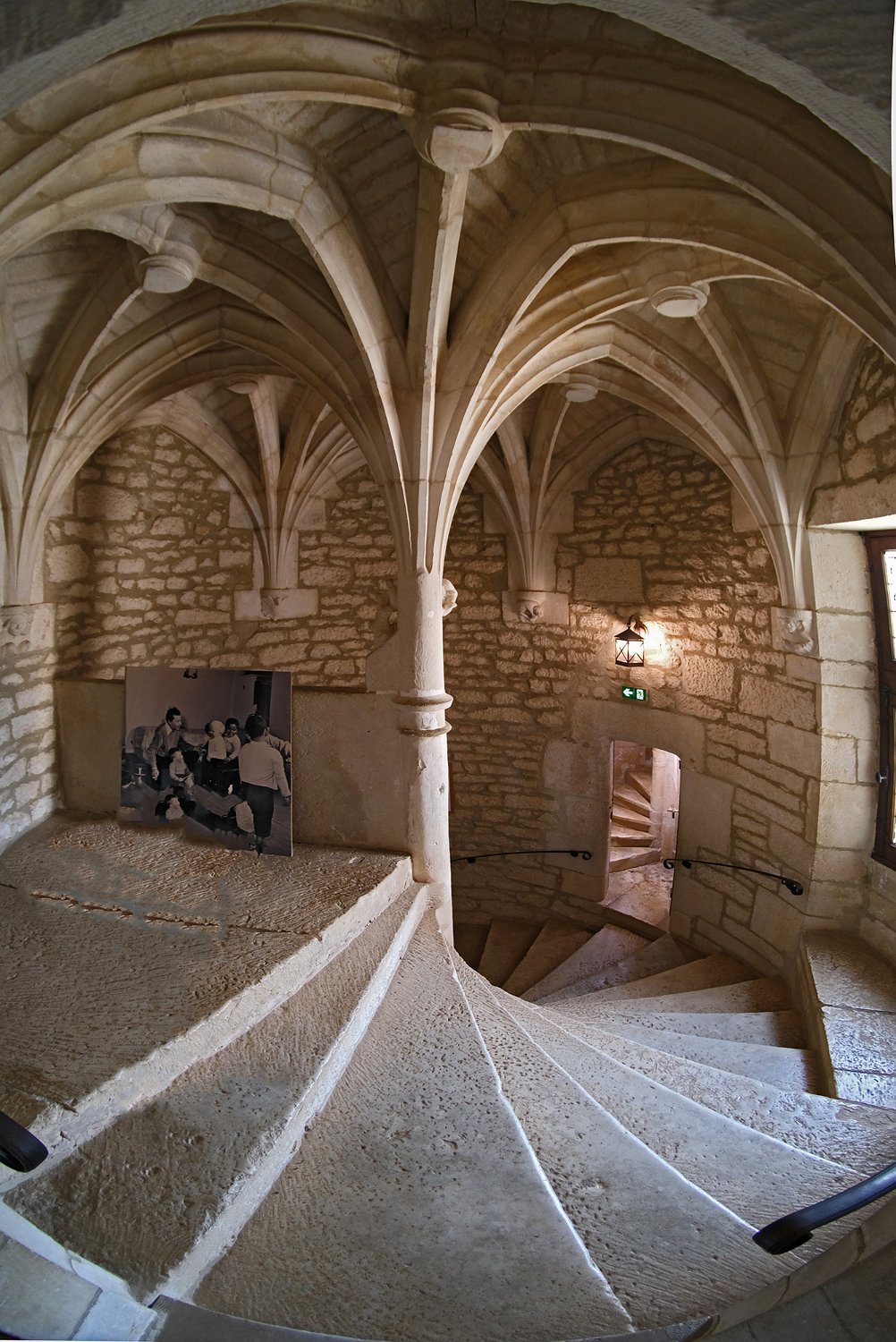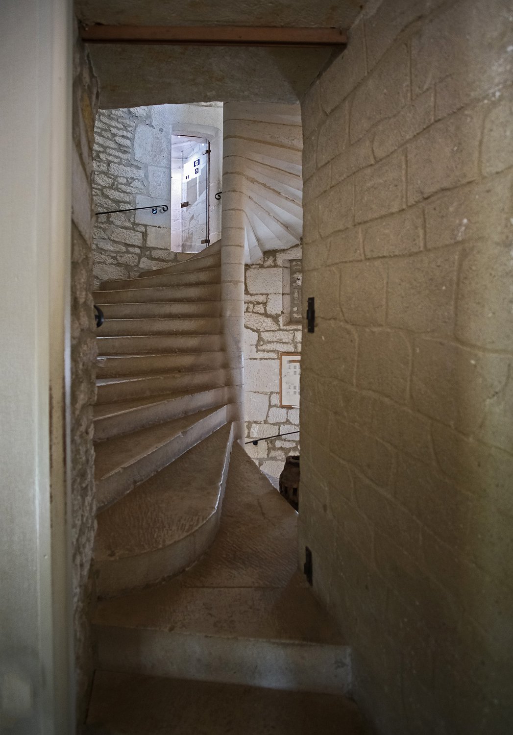 L'escalier à vis au dernier étage - clé de voûte en croisée d'ogives du XVe siècle