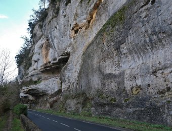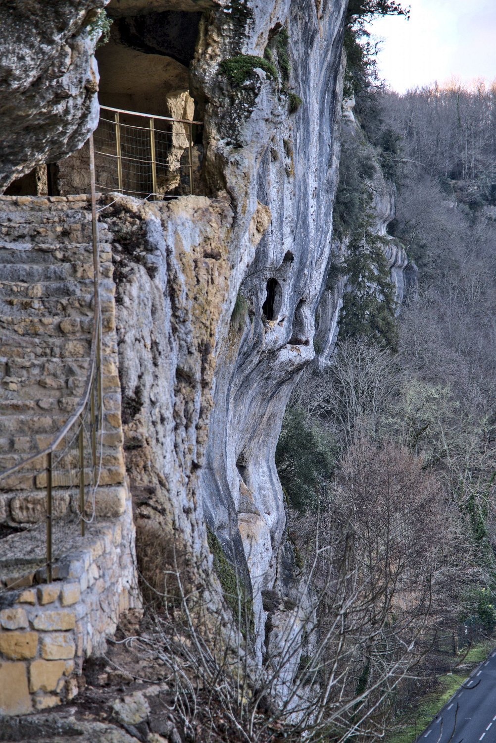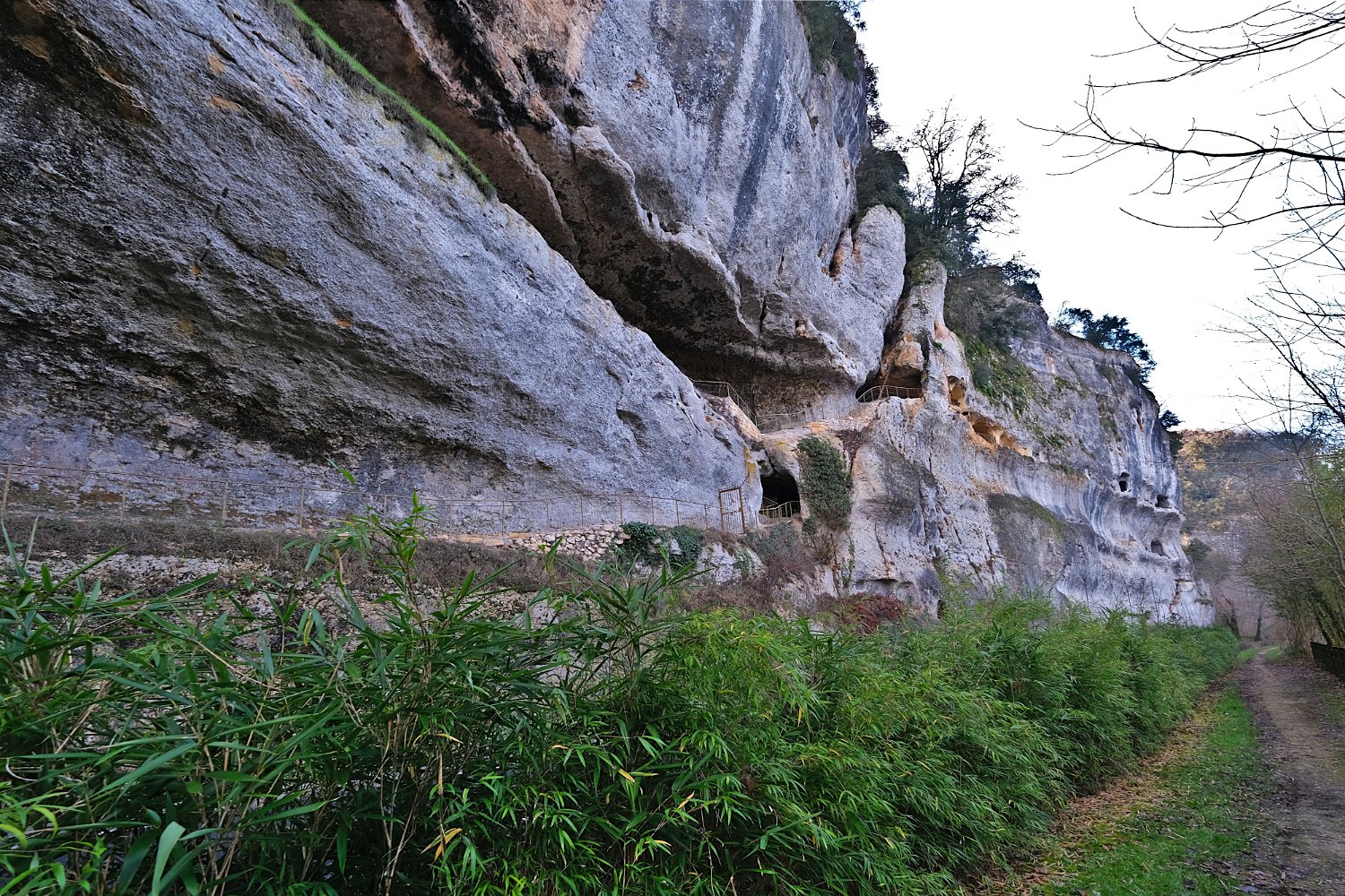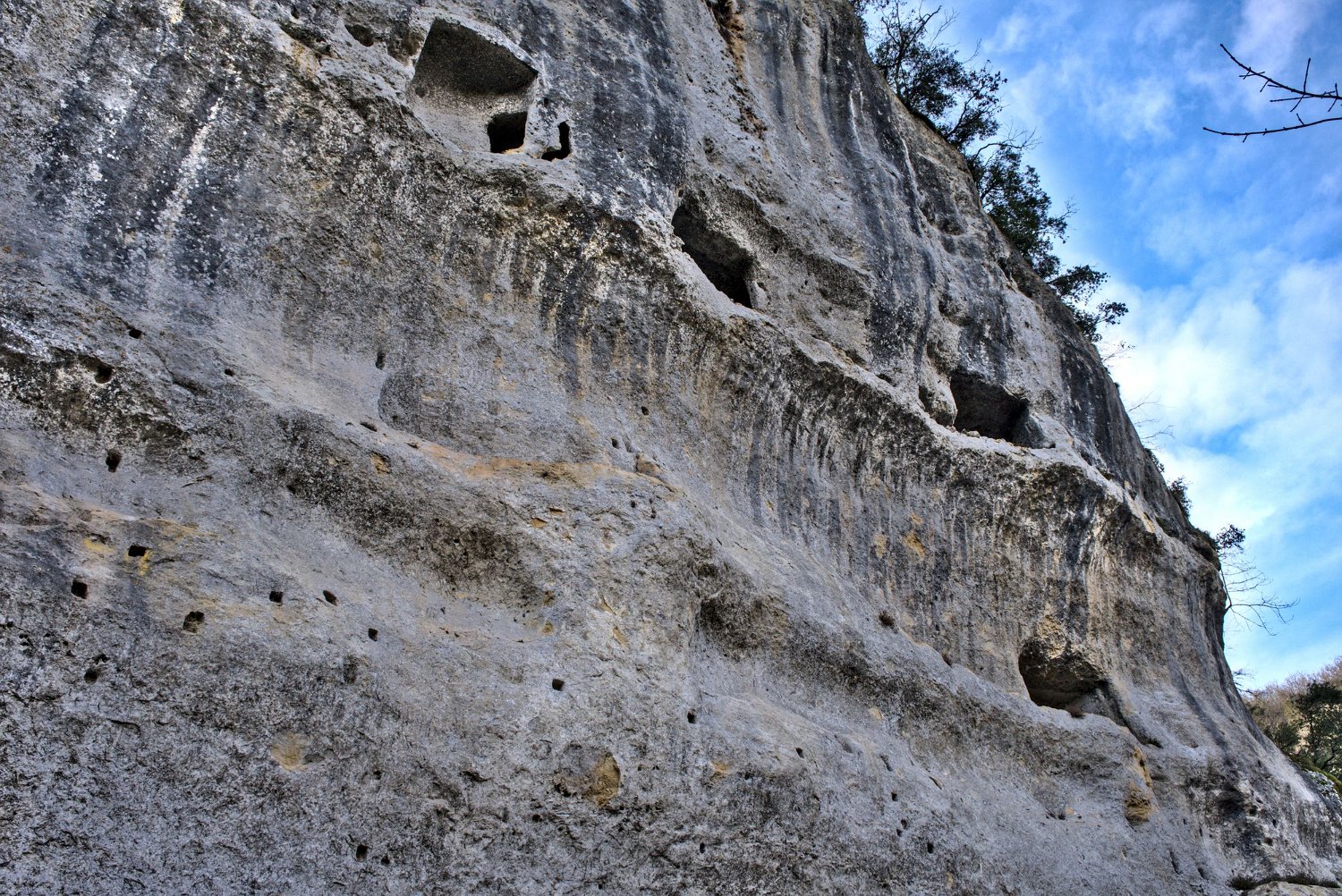 Vue des ouvertures des salles troglodytes du site depuis la route
