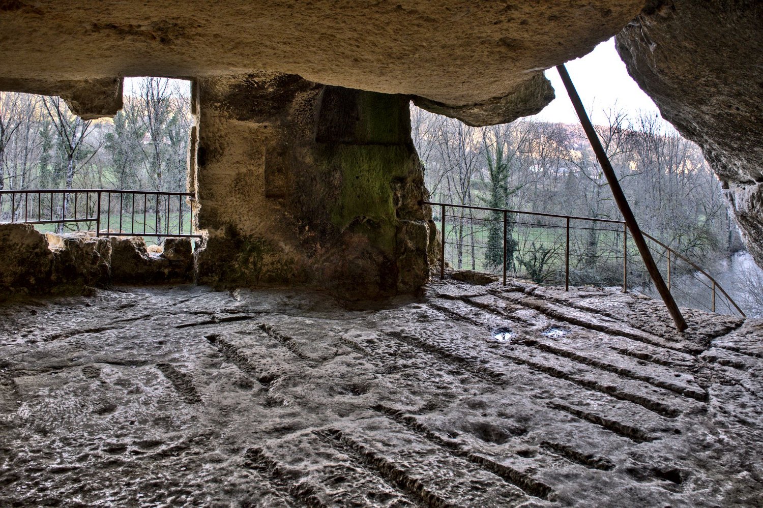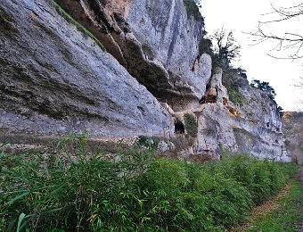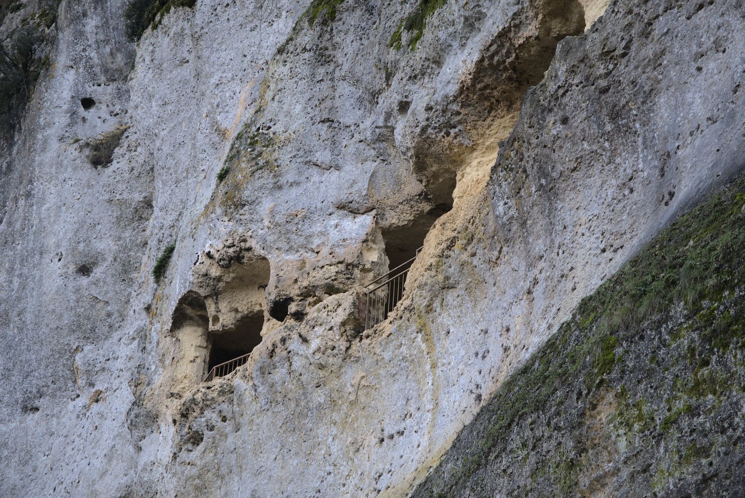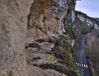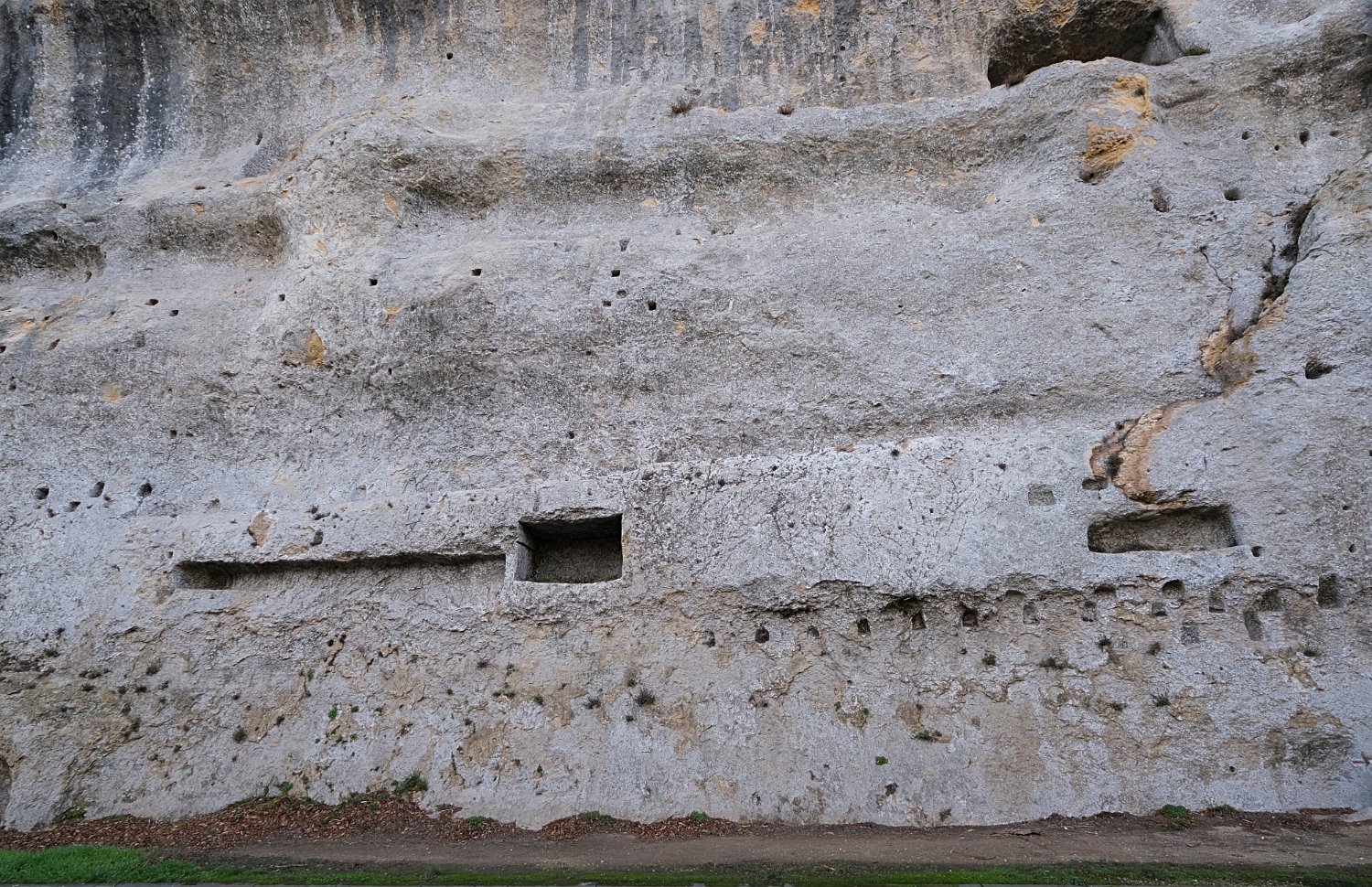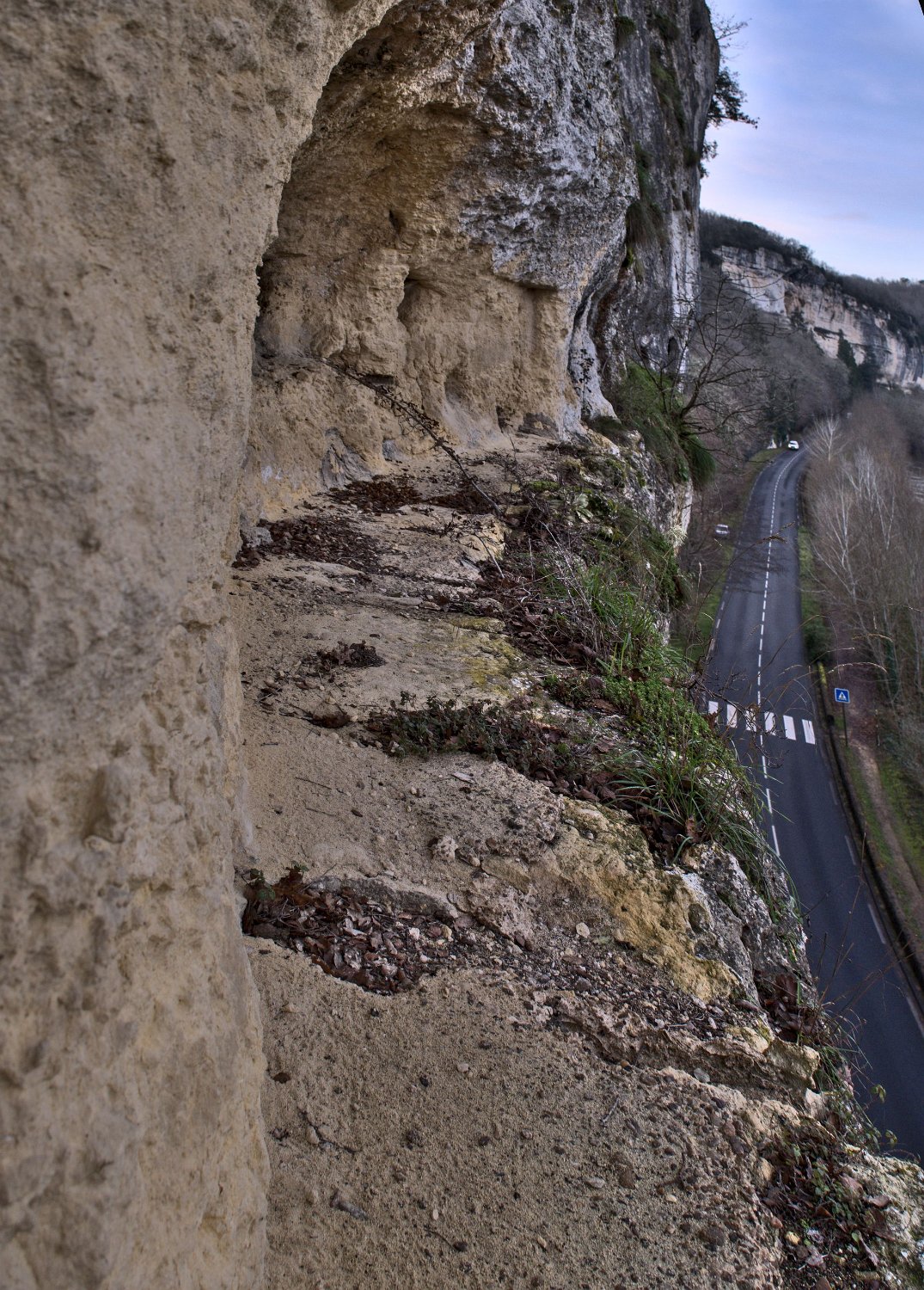 Vue des ouvertures des salles troglodytes du site depuis la route