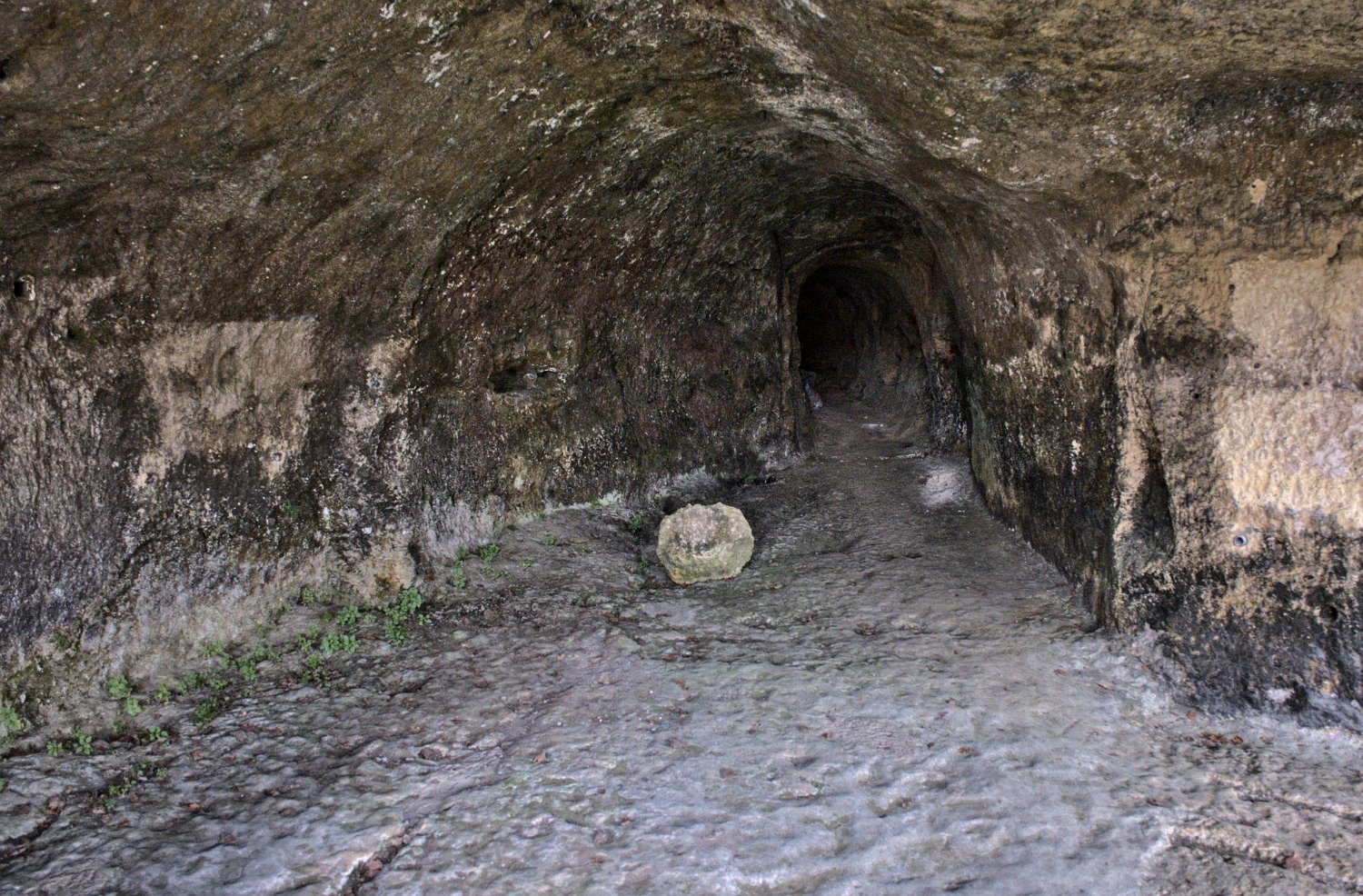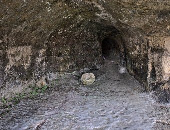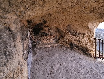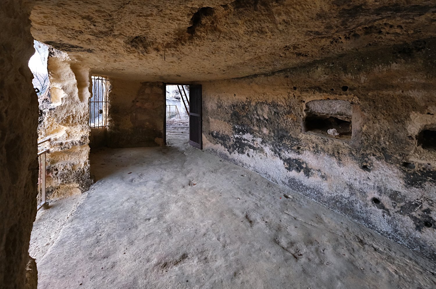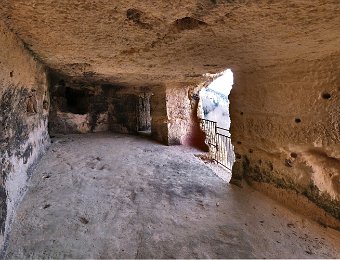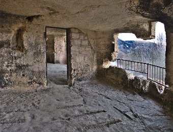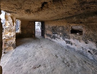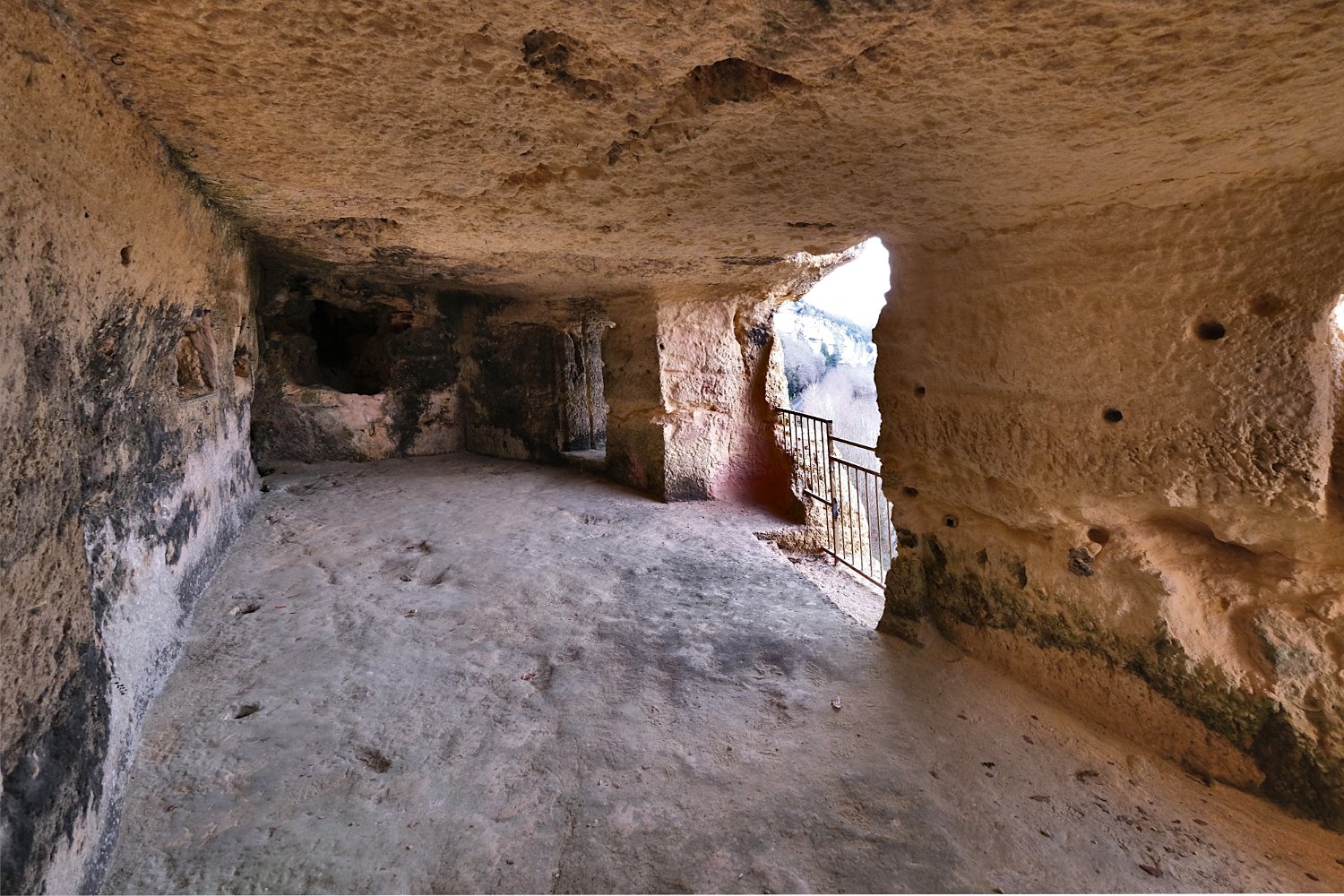 Vue des ouvertures des salles troglodytes du site depuis la route