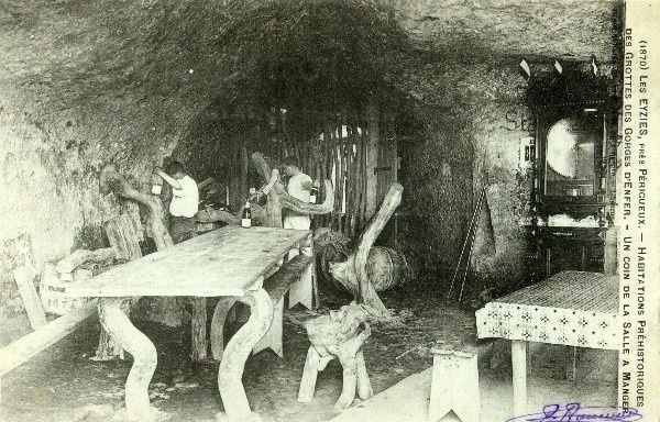 Carte postale du début du XXé siècle montrant l'ameublement de la 1ère salle et son plancher à l'époque de Gabriel Gallou