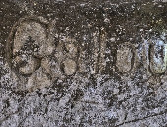 Terrasse du 1er niveau - Lettre gravée (G de Galou ?)