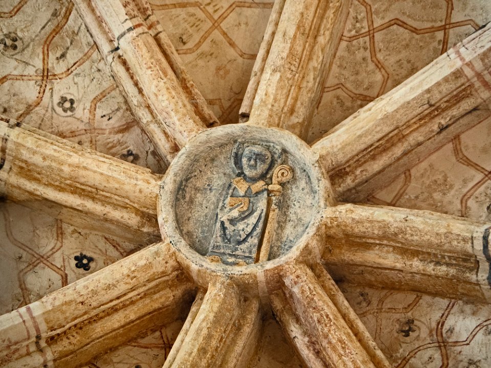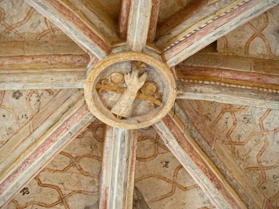Clé de voute représentant une main bénissant