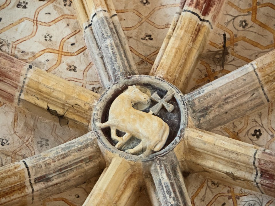 Clé de voute représentant un agneau pascal