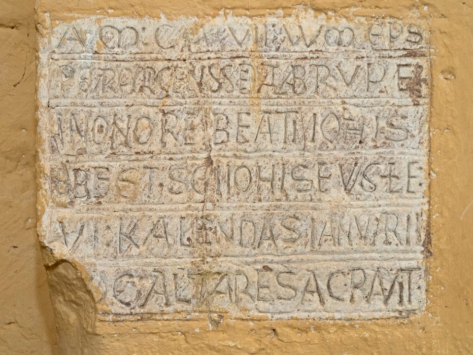 Inscription attestant de la consécration de l'autel en 1117 par l'évêque de Périgueux Guillaume d'Auberoche