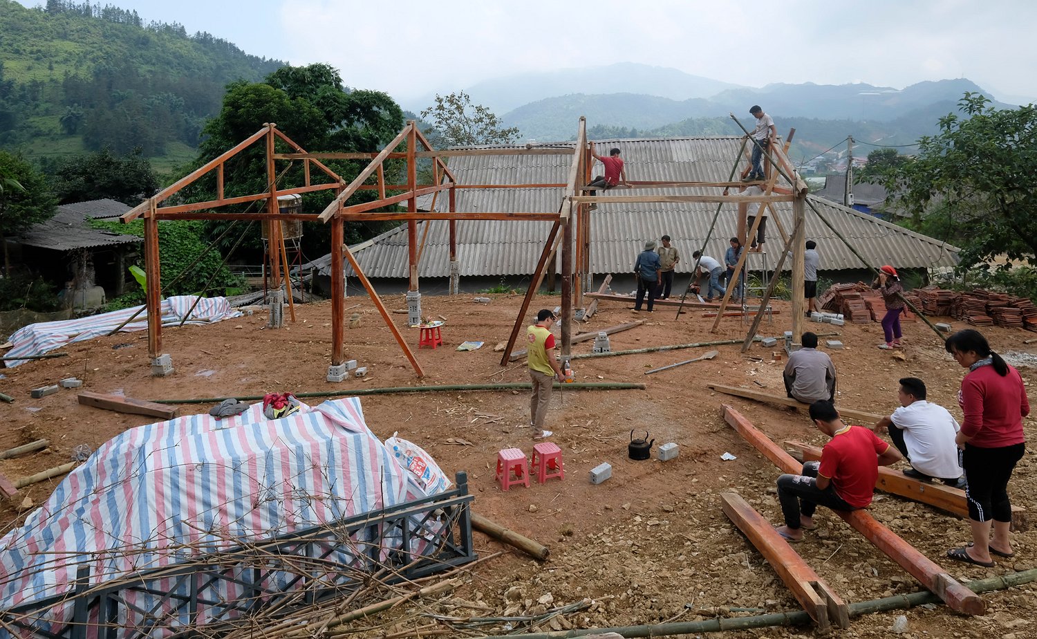 L'habitat traditionnel des campagnes et des villages ruraux du nord Vietnam est très spécifique à cette région du fait de son peuplement par de nombreuses ethnies. Les vietnamiens ont des règles très différentes des nôtres pour construire leurs maisons. Ils commencent par le toit ! Les maisons traditionnelles sont un assemblage d'éléments de bois avec tenons et mortaises sans clous ni parties métalliques. La couverture peut être végétale, en bois ou en fibrociment. L'utilisation de l'espace est différent suivant les ethnies. Les maisons traditionnelles servent à abriter tant les habitants que les récoltes.