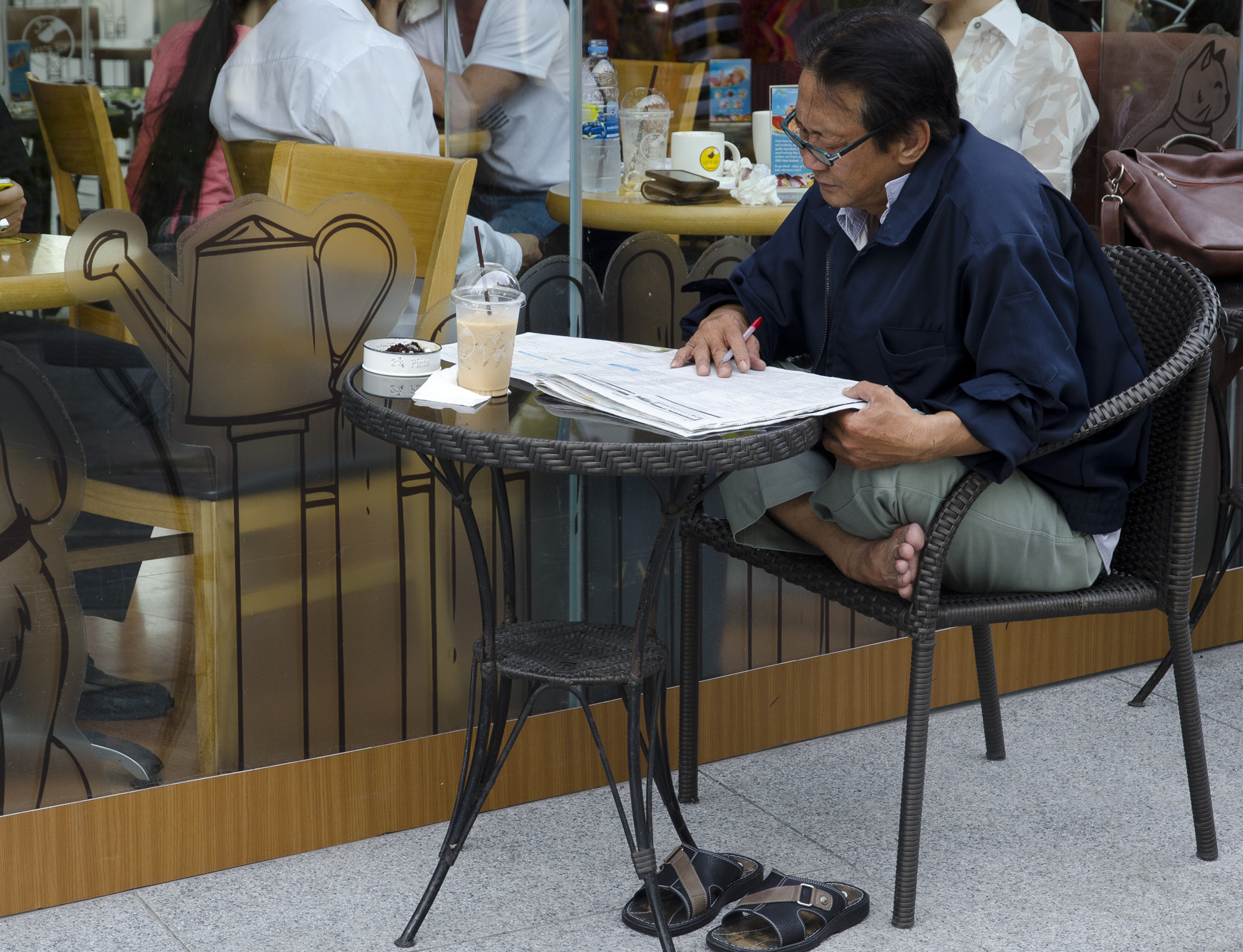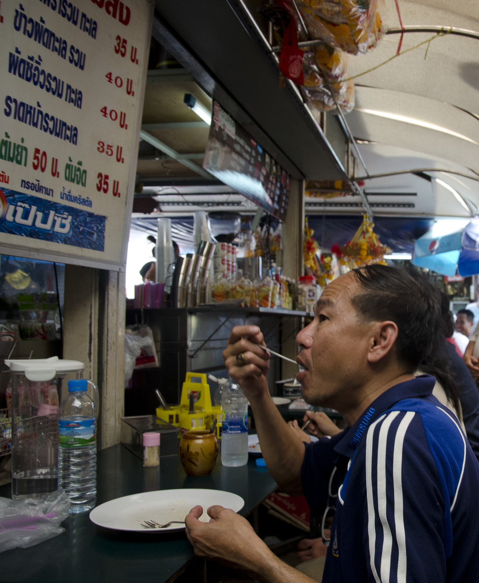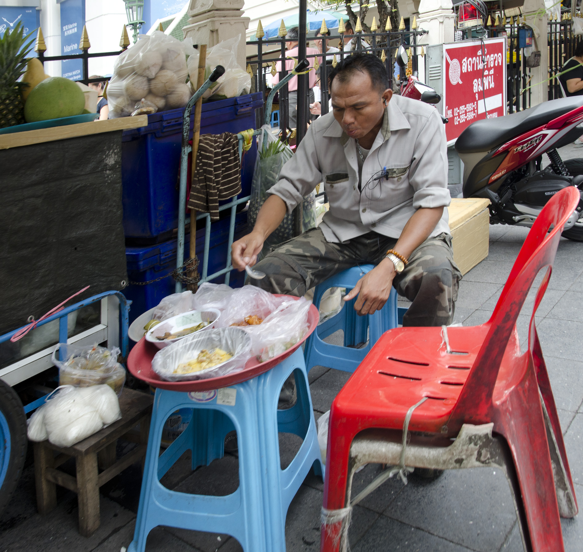• DSC 0873  Homme se restaurant dans la rue : Bangkok, Gens, Marchés, Rattanakosin, Wat Ratchanadda